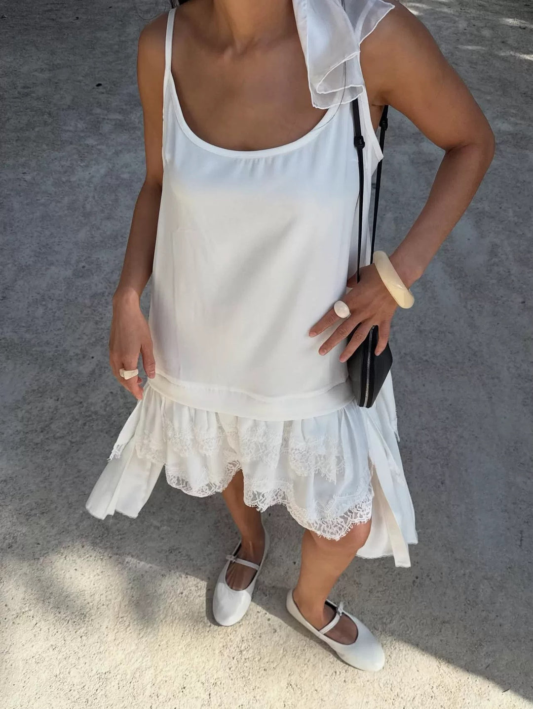 サイドシアーレースリボントップス
