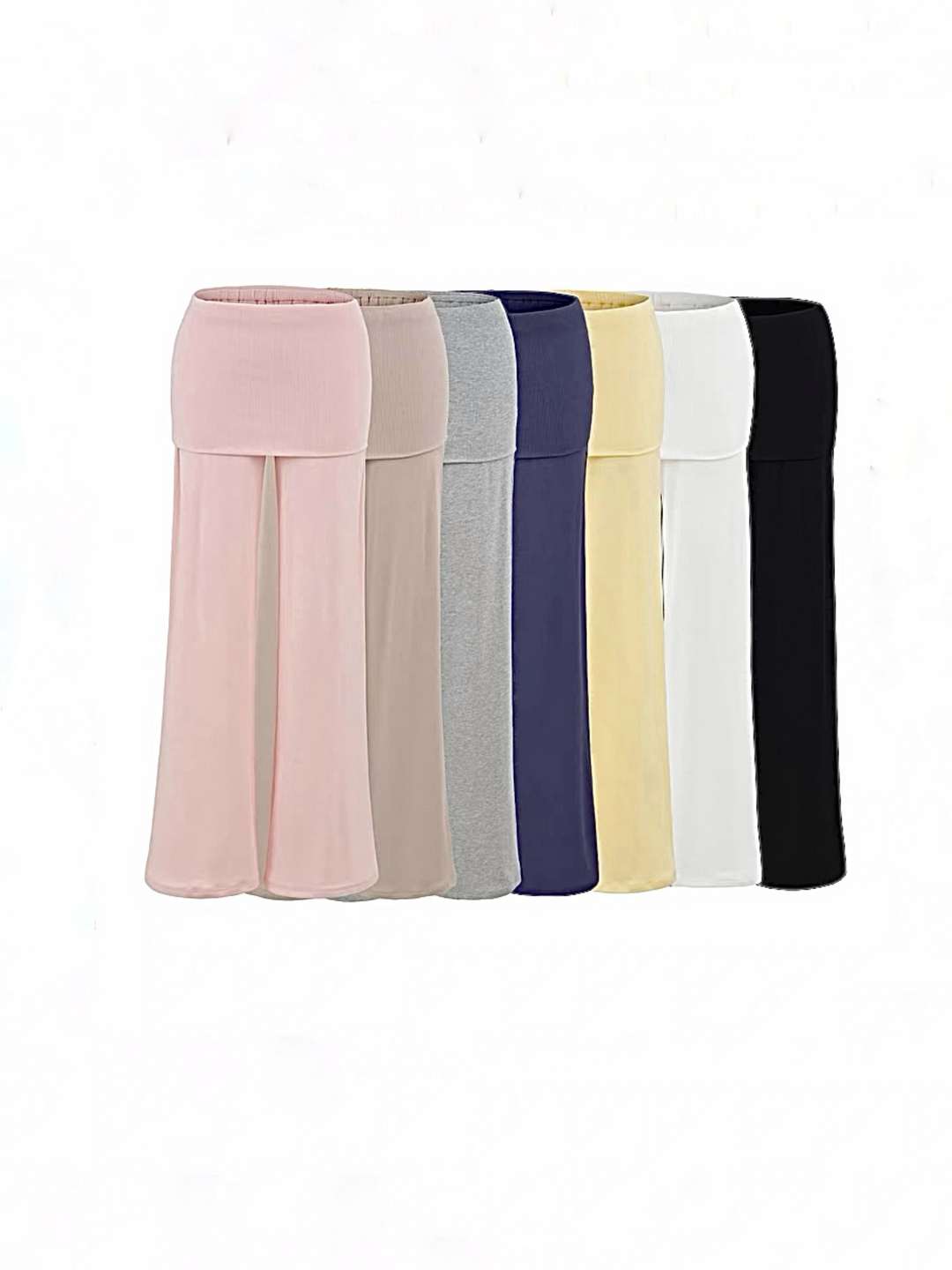フィットスカートレイヤーリブフレアパンツ