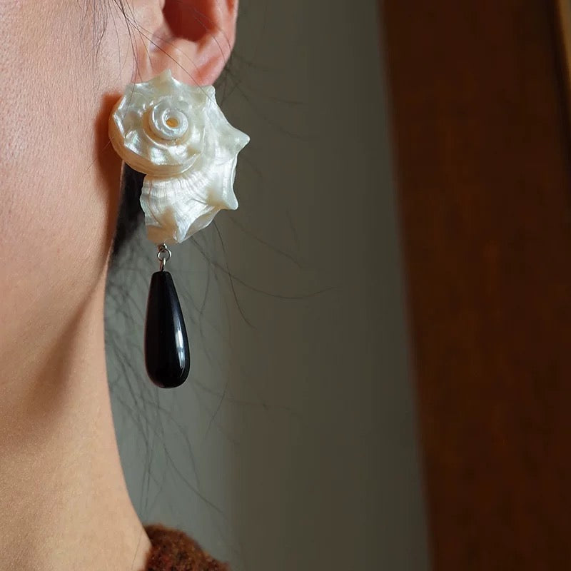 そこに、艶やかに輝くオニキスドロップを合わせることで神秘的なコントラストを演出。