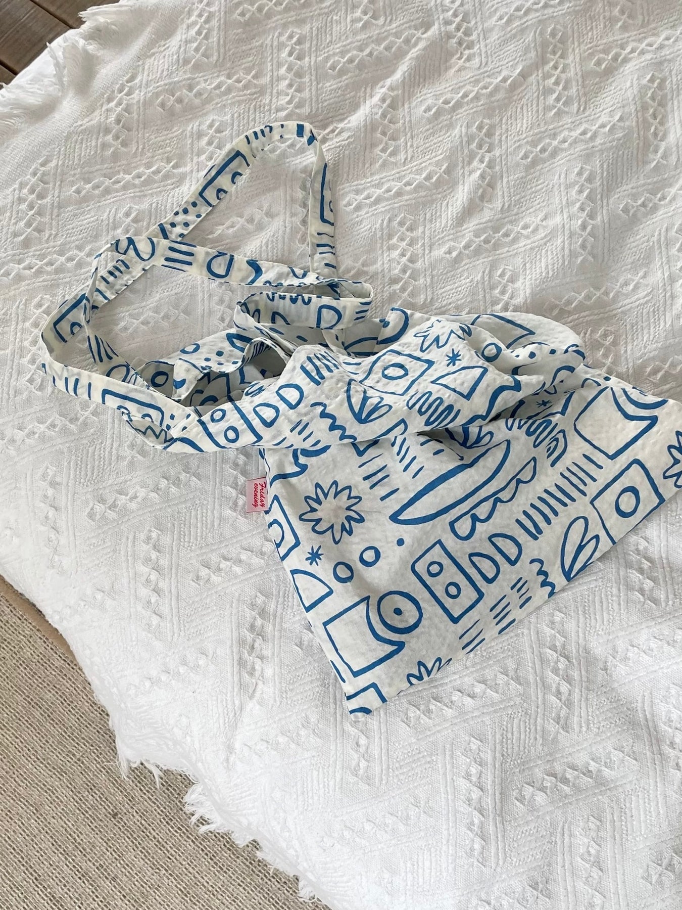 大人気のニュアンスアートが総柄プリントされた表面に細かい凹凸が入ったリップル生地のトートバッグ。