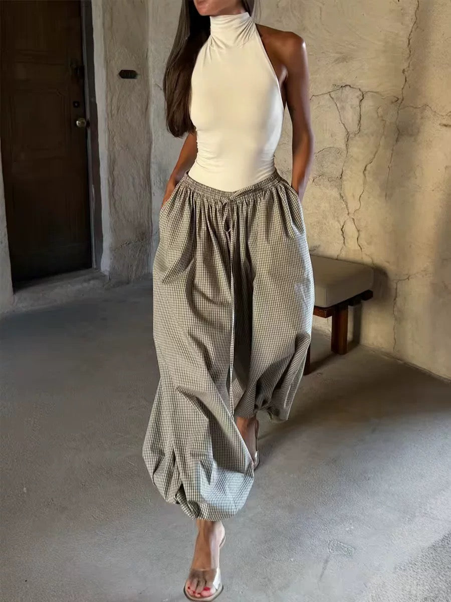 ギンガムワイドバルーンパンツ