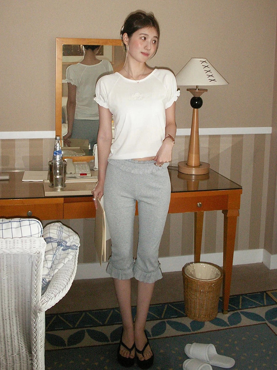 フリルディテールレギンスカプリパンツ