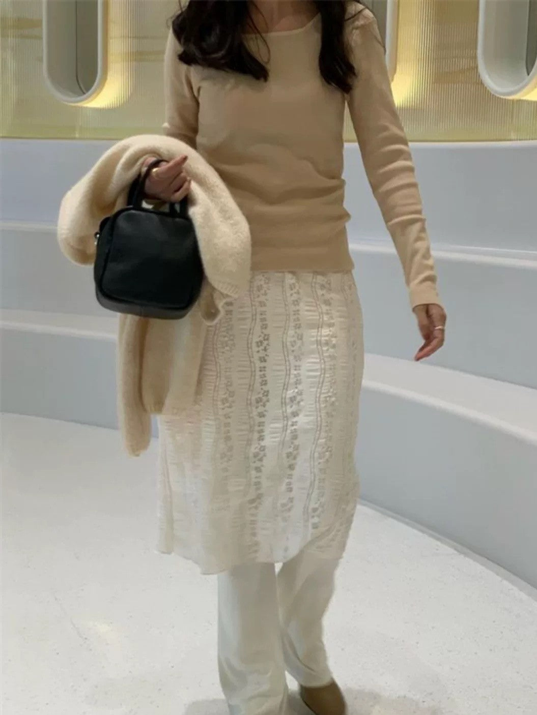 レーススカート付きフレアパンツ
