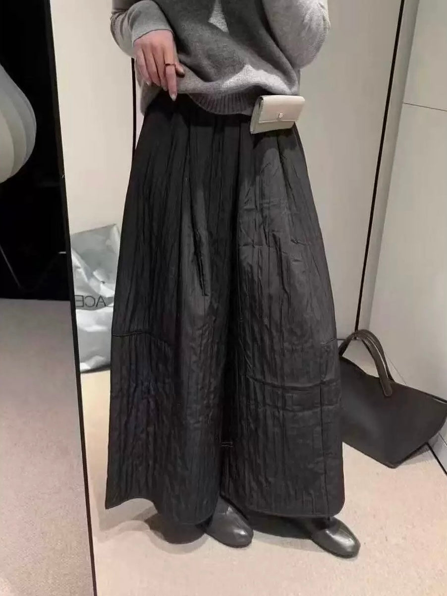 裏起毛キルティング風ワイドパンツ