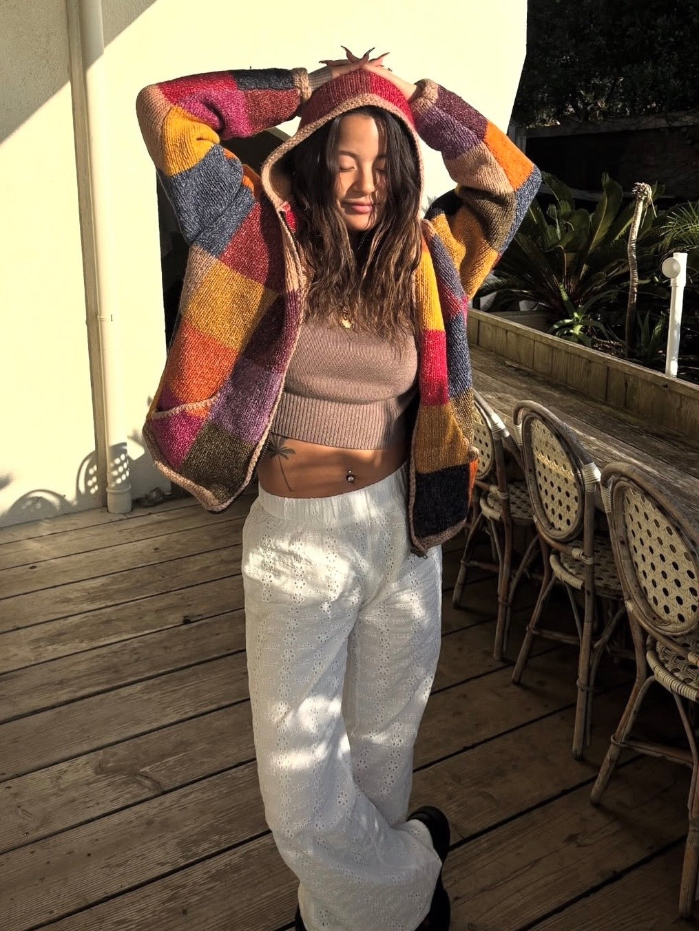 ミッドライズデザインなのでトレンドライクに着こなせます!ニットと合わせてナチュラルスタイリングに♪