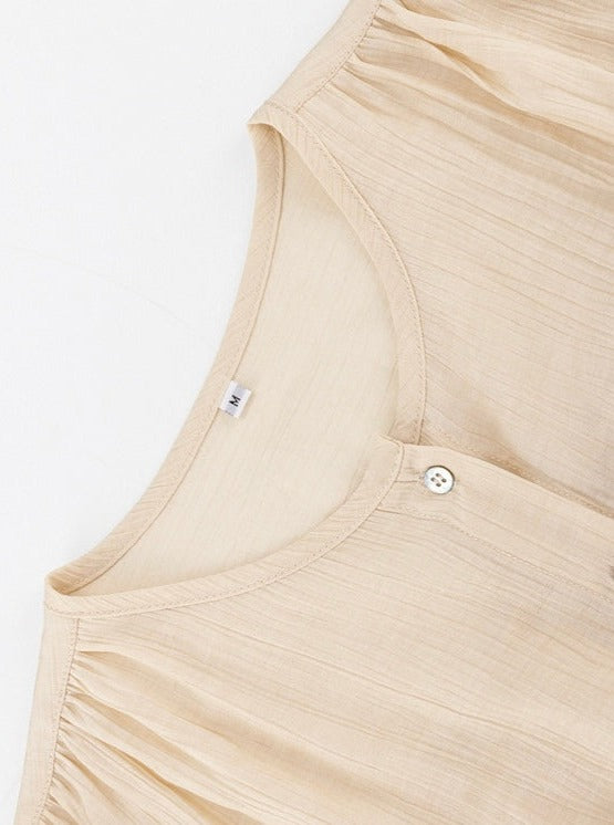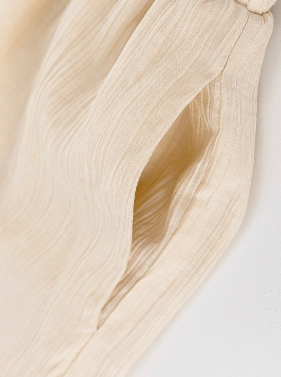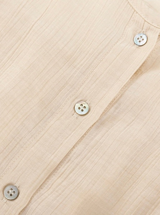 〈サスティナブル〉ノーカラー楊柳ブラウスセットアップです。