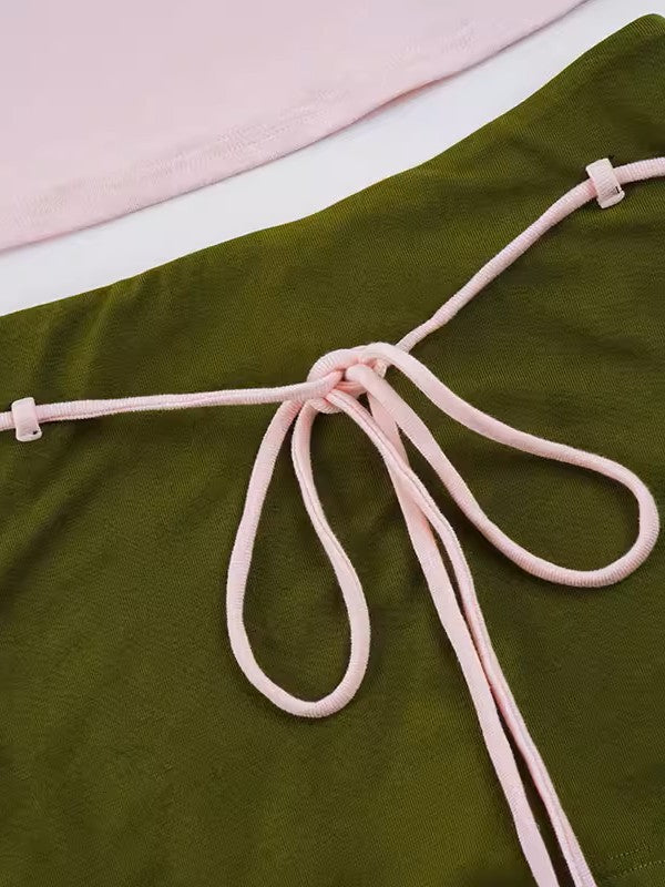 同シリーズの『ピンクグリーンコントラストトリムキャミソール』と合わせれば、統一感のあるセットアップスタイルが完成。