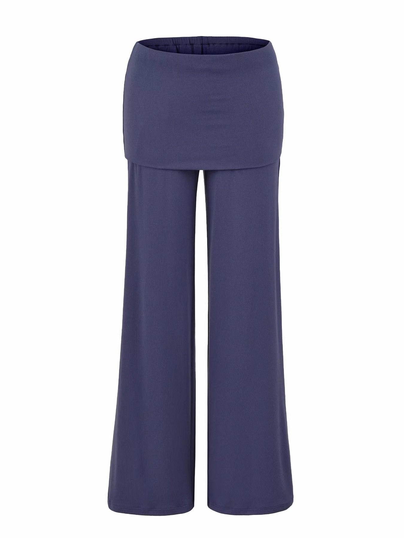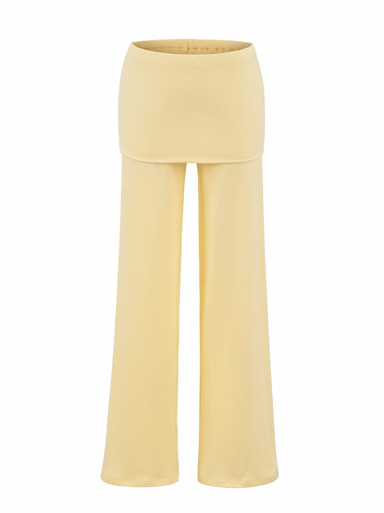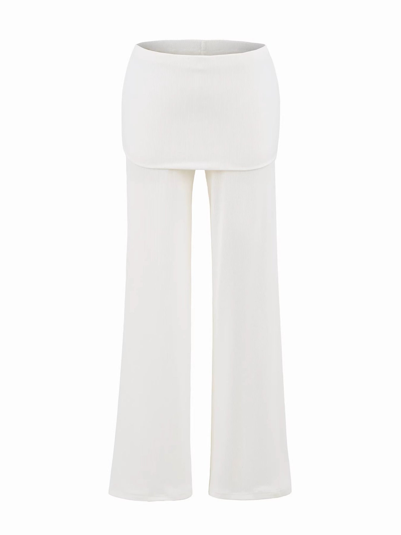 柔らかなリブ素材で快適な着心地を叶える、スカートライクなレイヤードデザインのフレアパンツ。