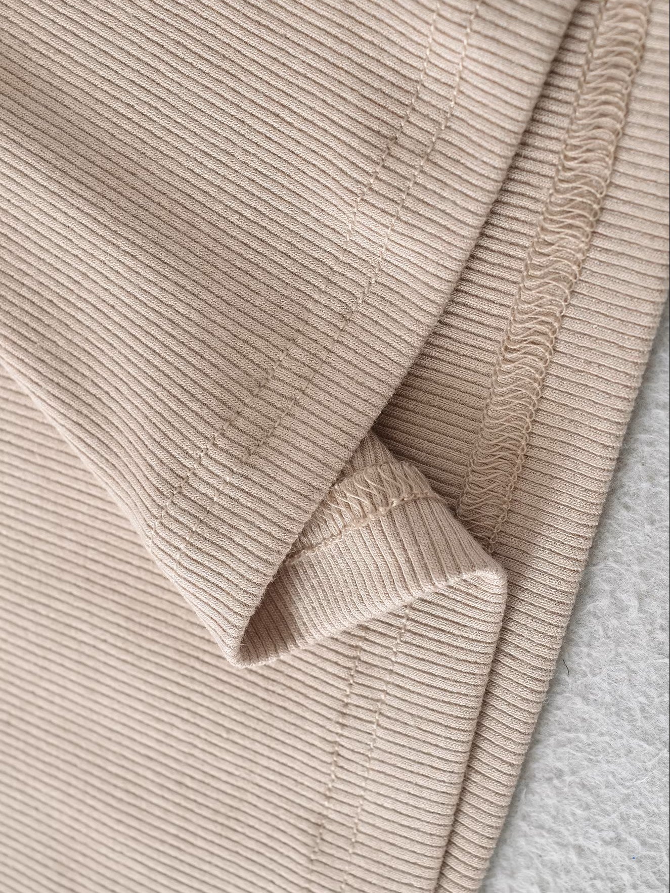 柔らかく伸縮性のあるリブ素材を使用しており、動きやすく快適。ヨガやピラティス、ルームウェアとしてはもちろん、カジュアルコーデにも取り入れやすい万能アイテムです。