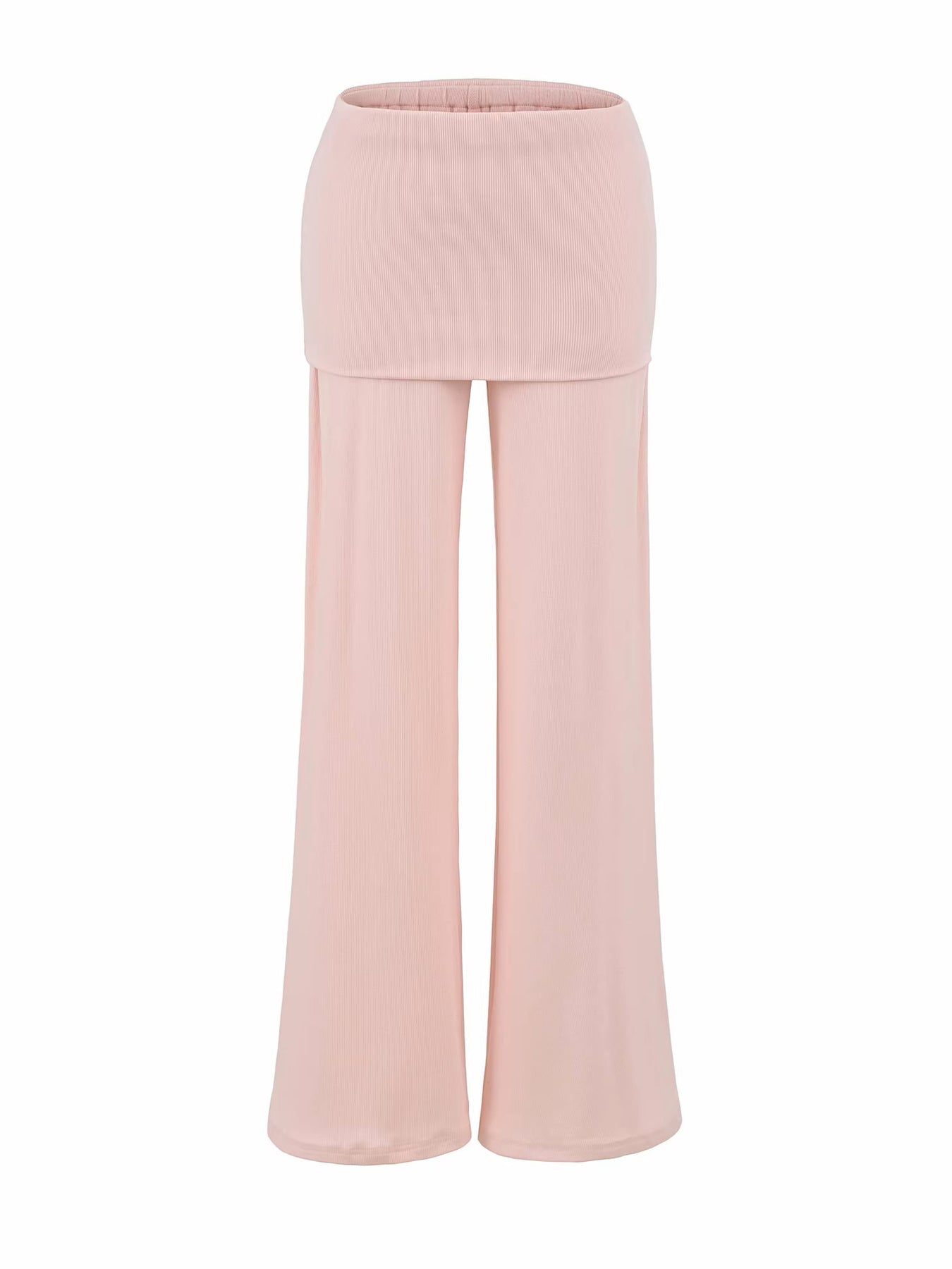 フィットスカートレイヤーリブフレアパンツ