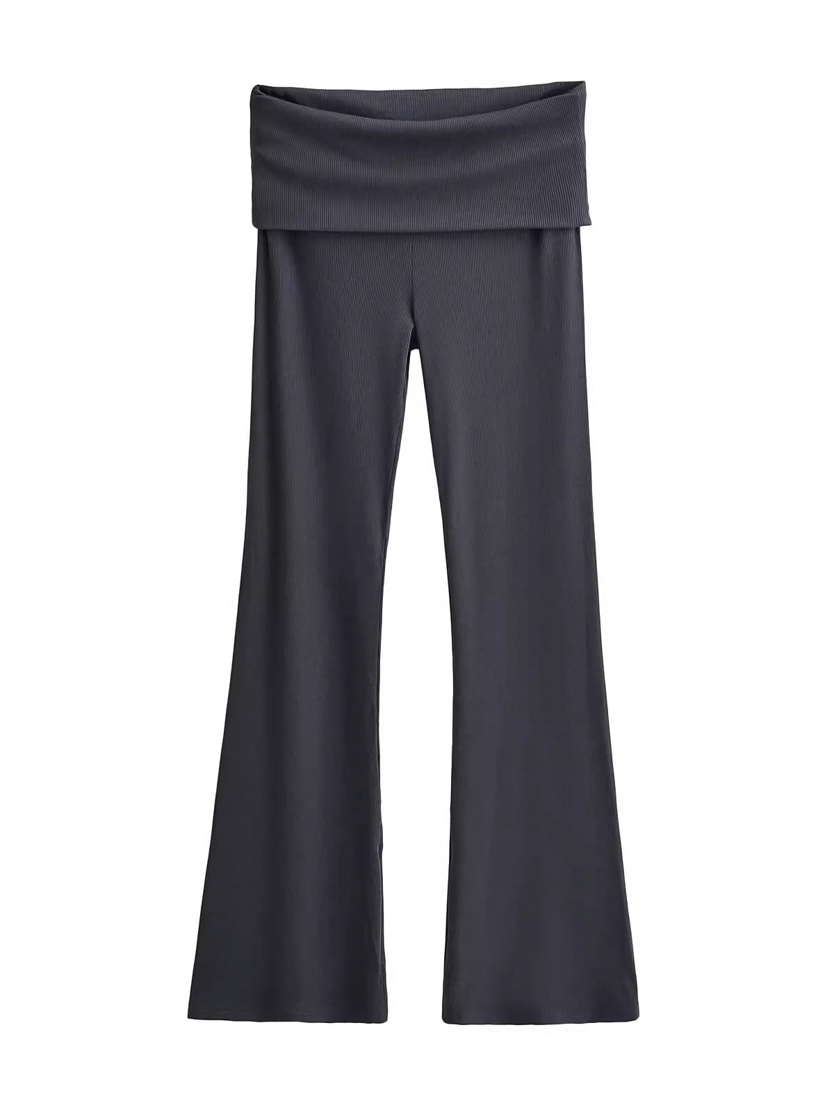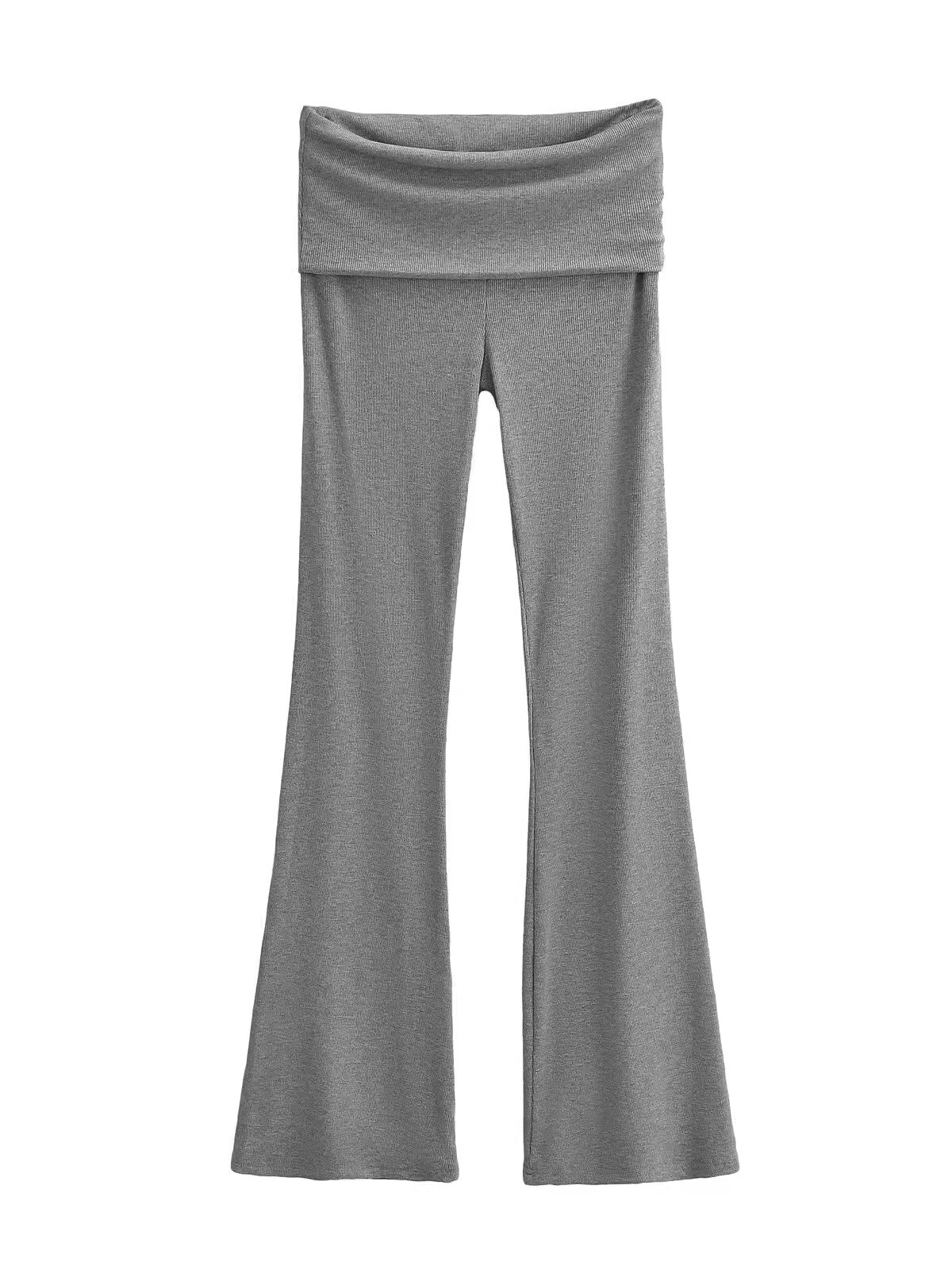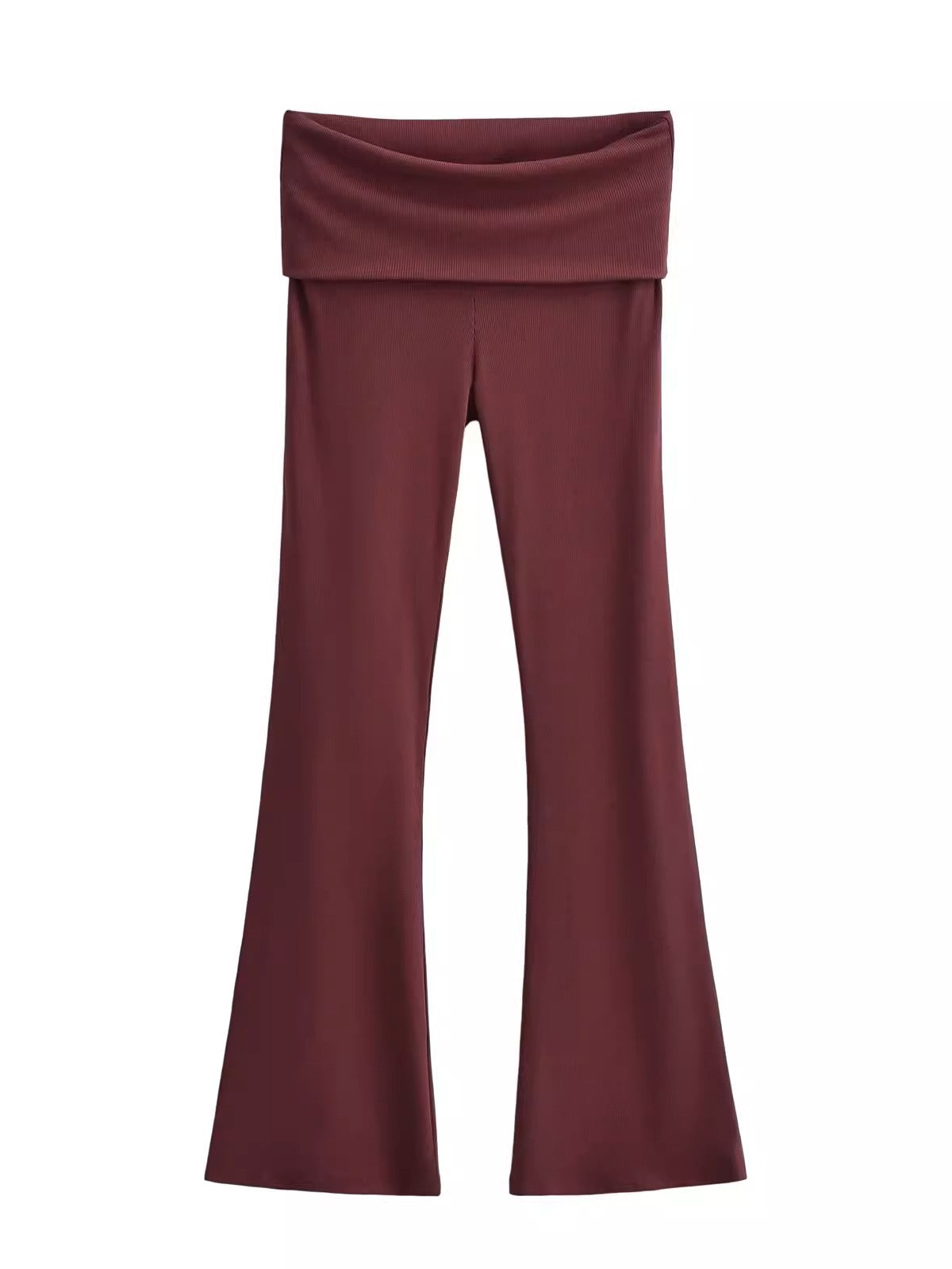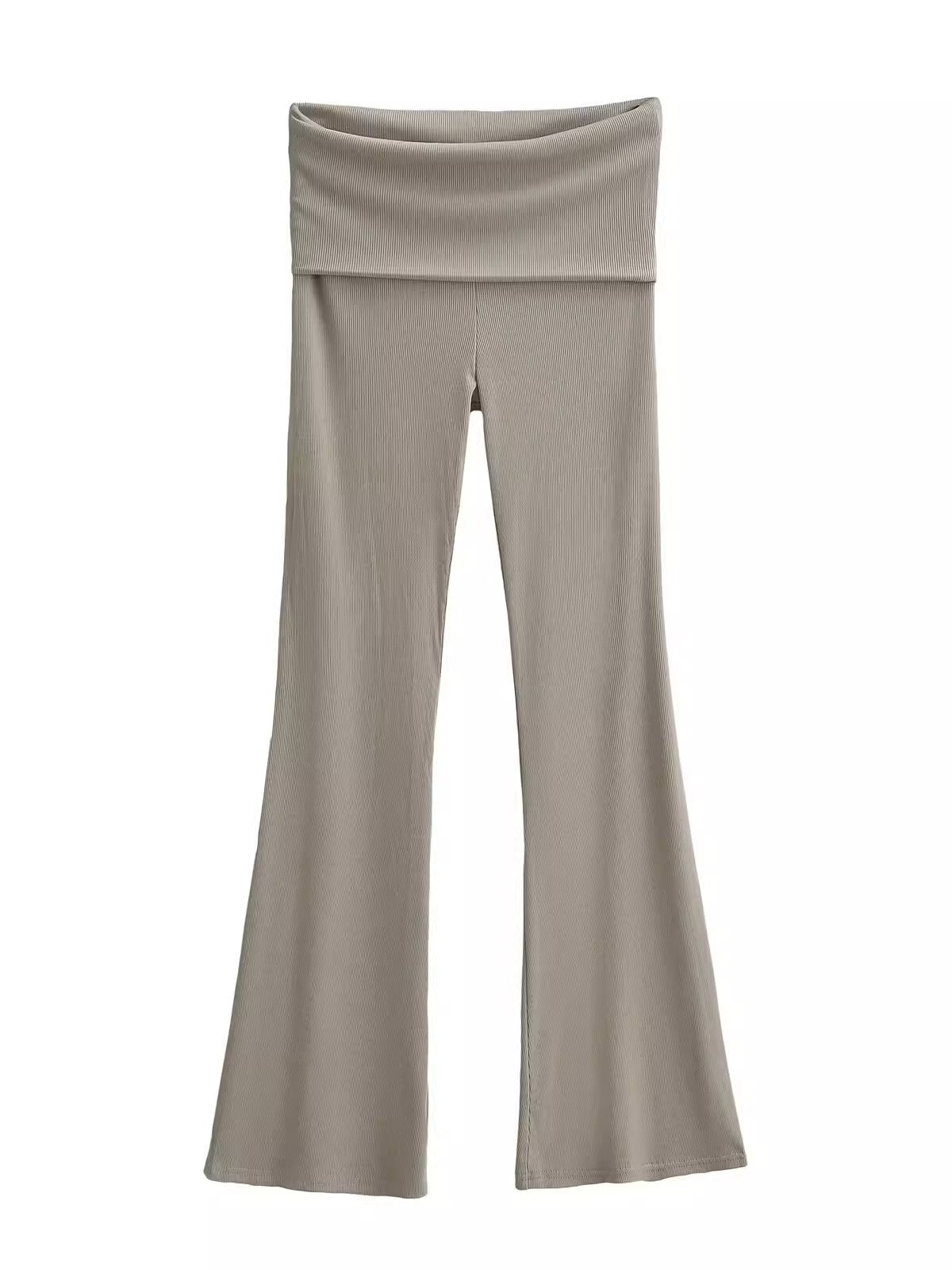 柔らかなリブ素材が心地よい、リラックス感のあるフレアパンツ。