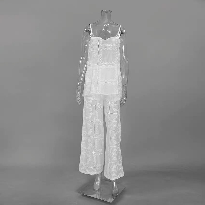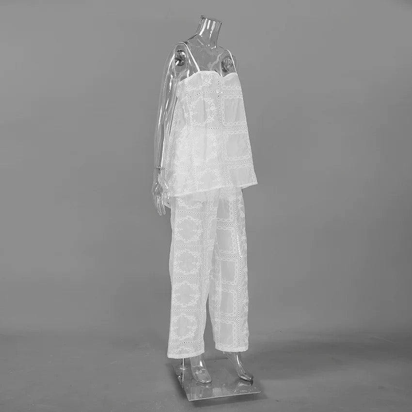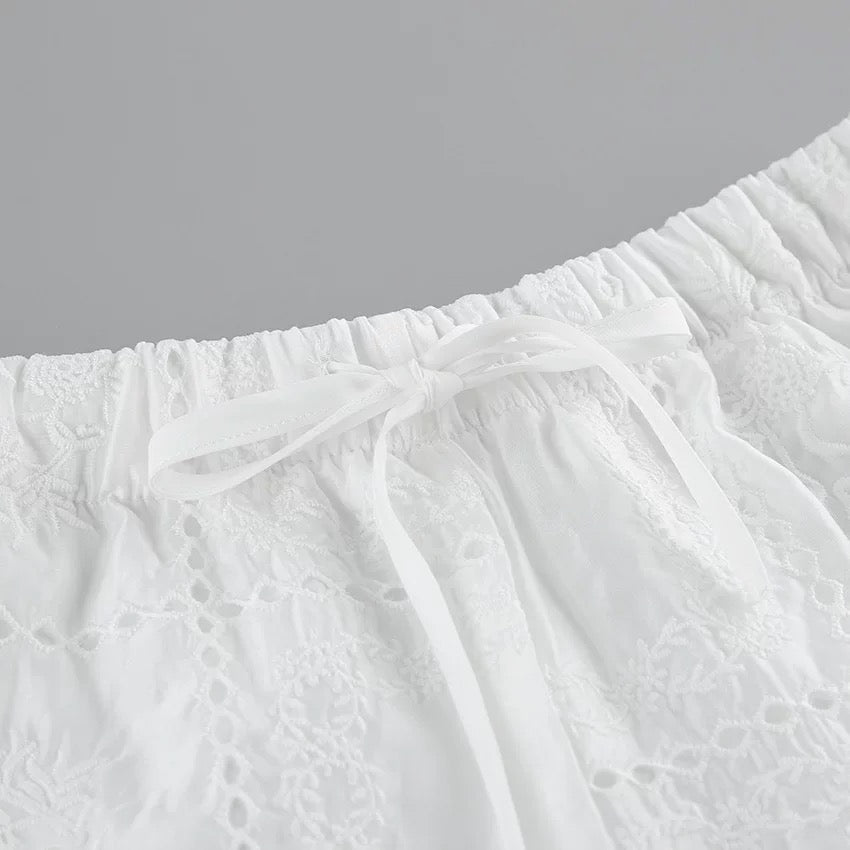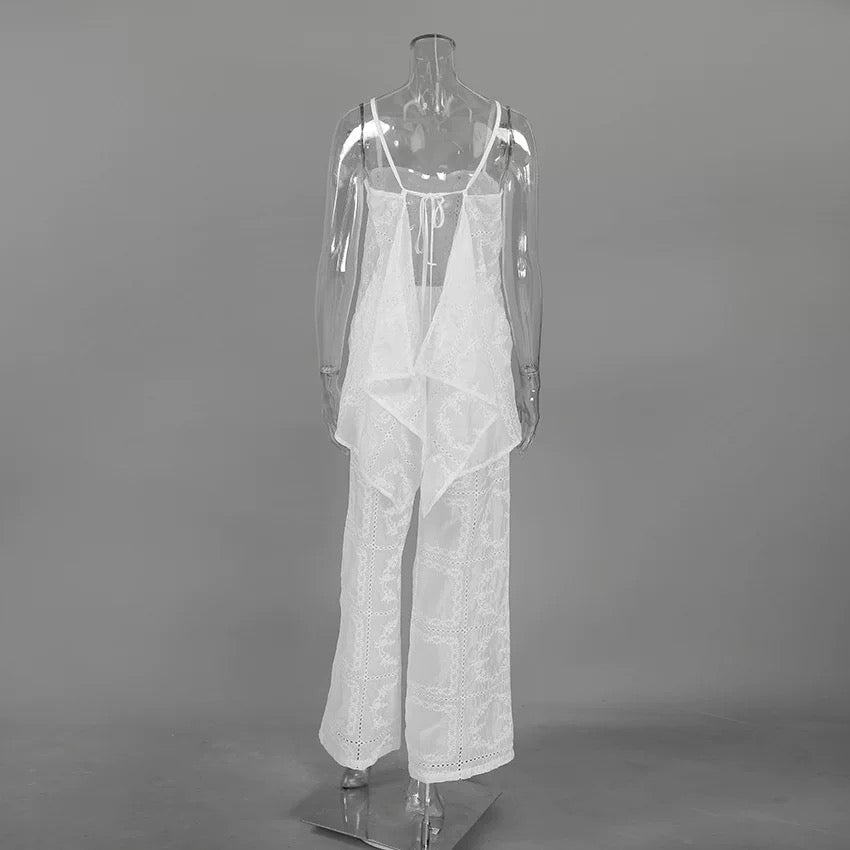 軽やかに透けるレースが印象的な、エフォートレスな魅力を纏うセットアップ。