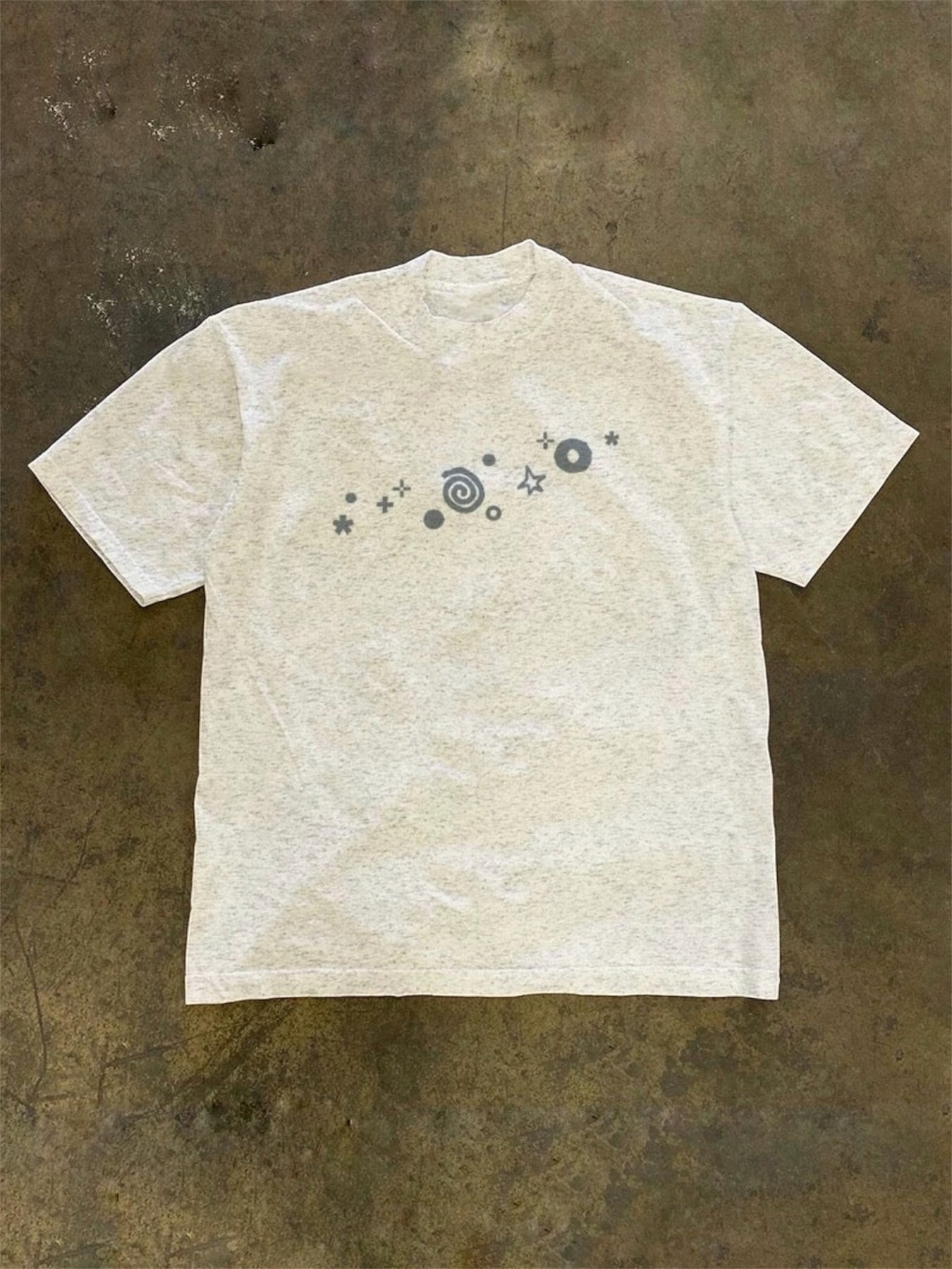 シンプルなデザインにさりげないグラフィックが映える、コットン素材の半袖Tシャツ。