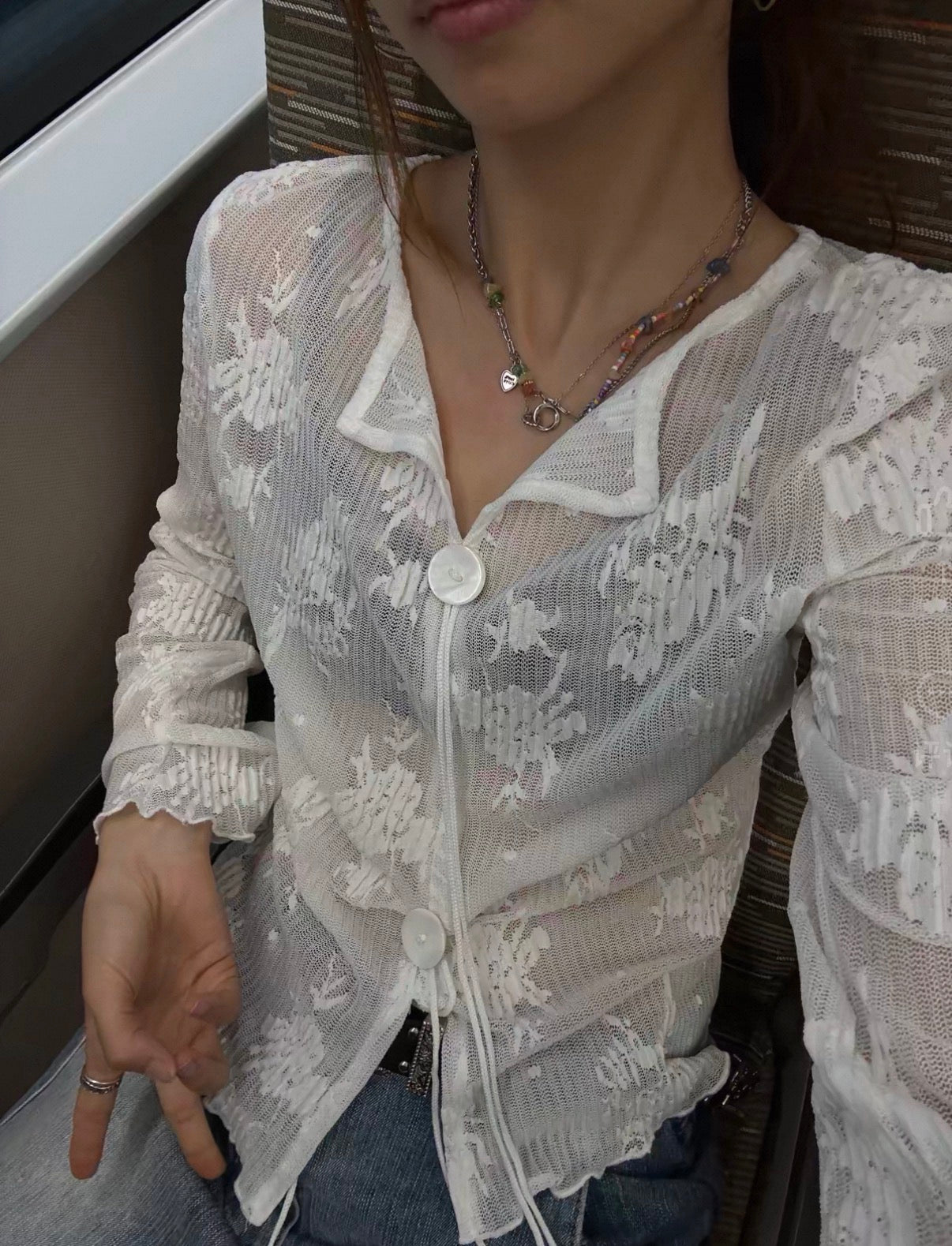 ほんのり透けるシアー素材が抜け感を演出し、インナーとのレイヤードを楽しめる一枚です。