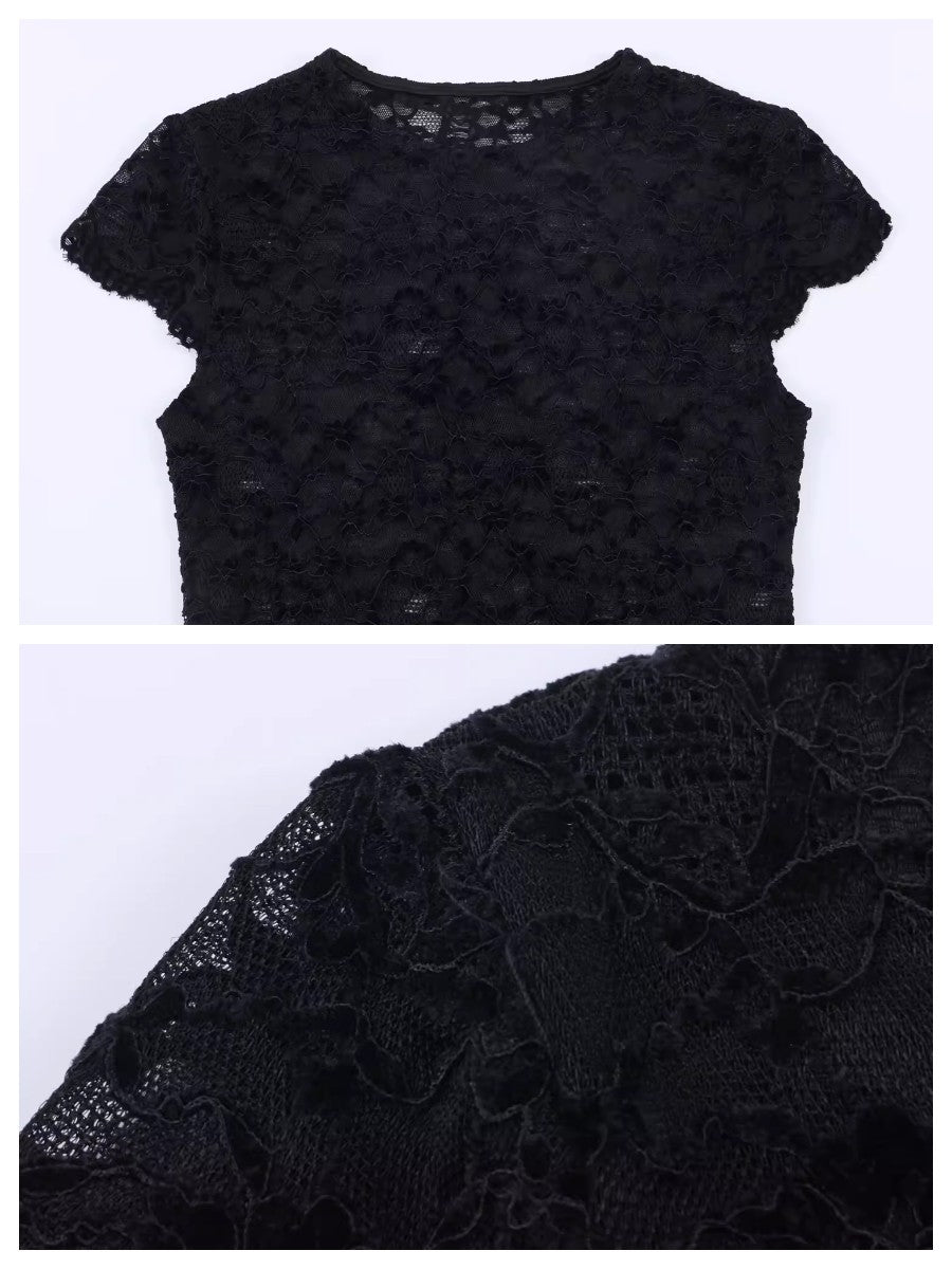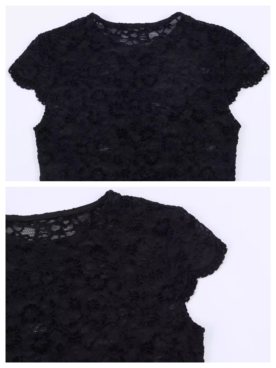シアーレースコンパクトショートスリーブトップス