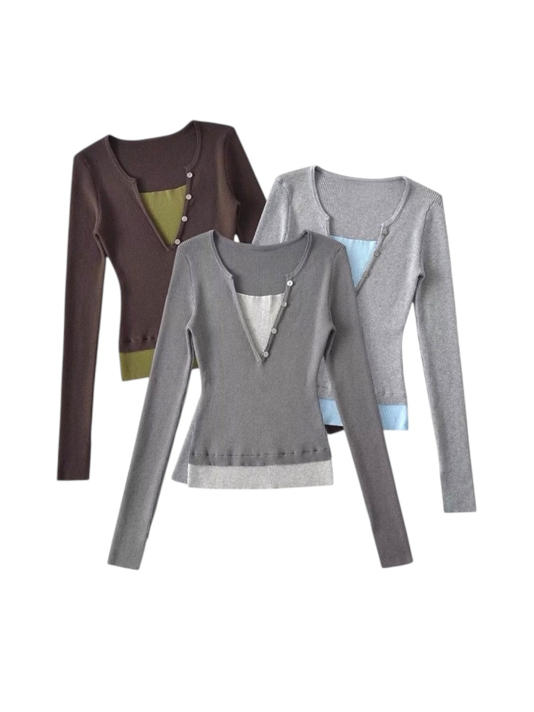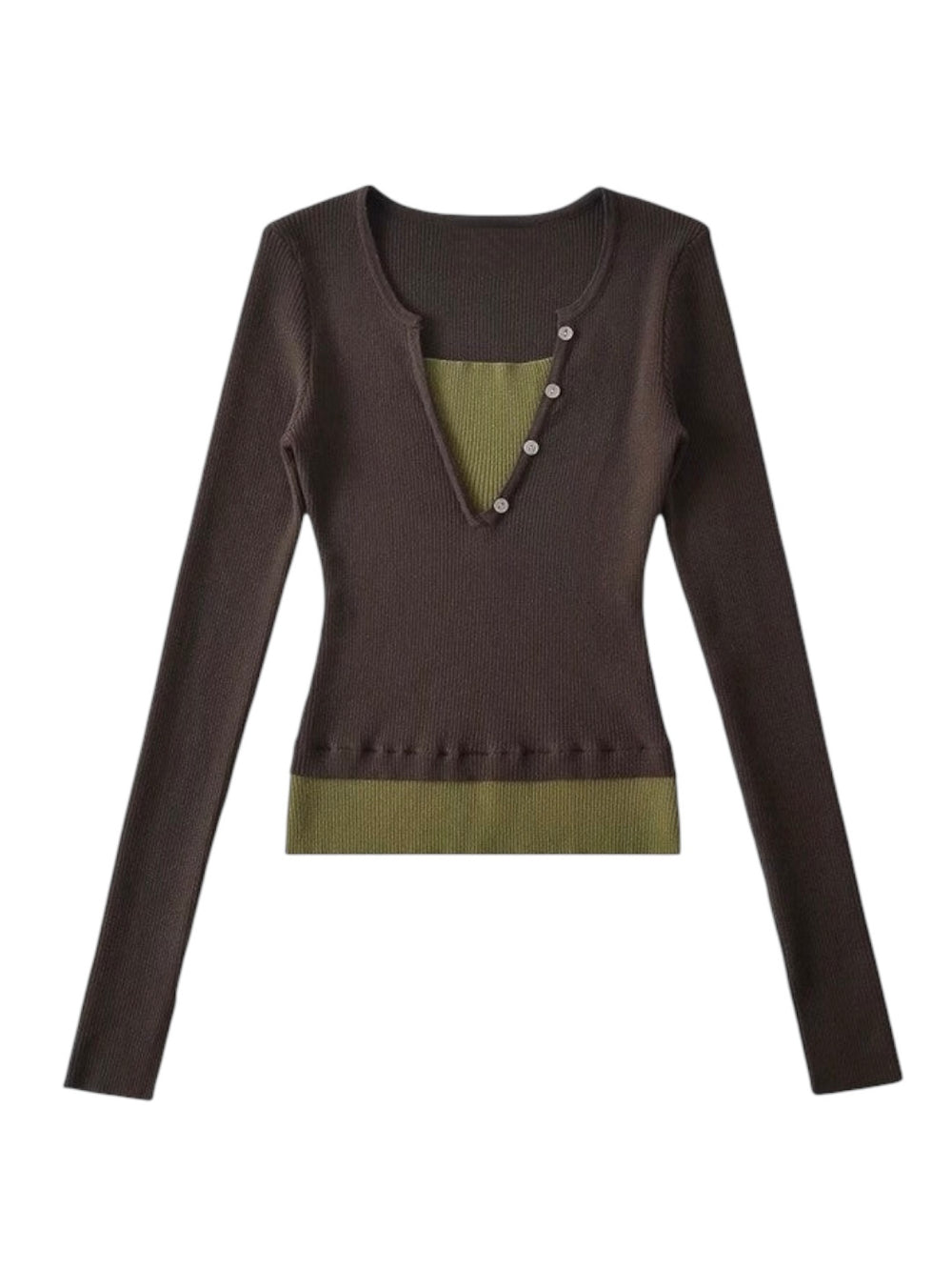 レイヤードバイカラーリブニットトップス