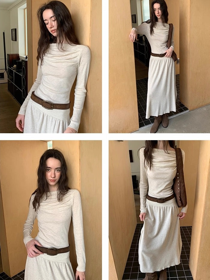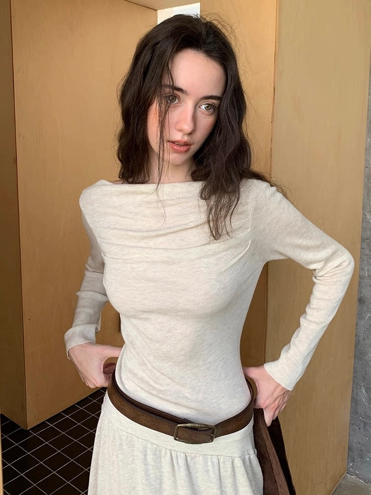 ウール混オフショルドレープトップス