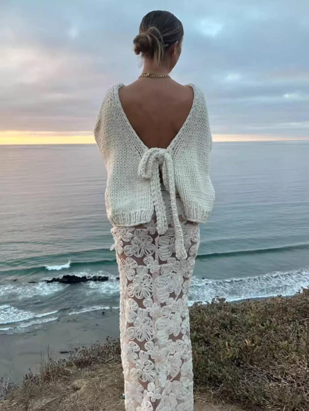 バックオープンリボンセーター