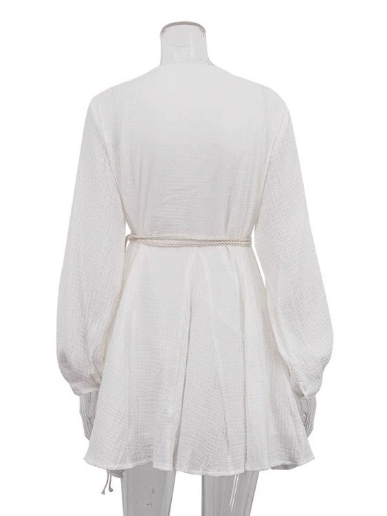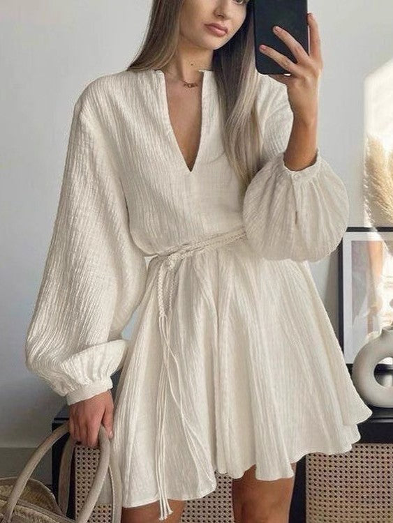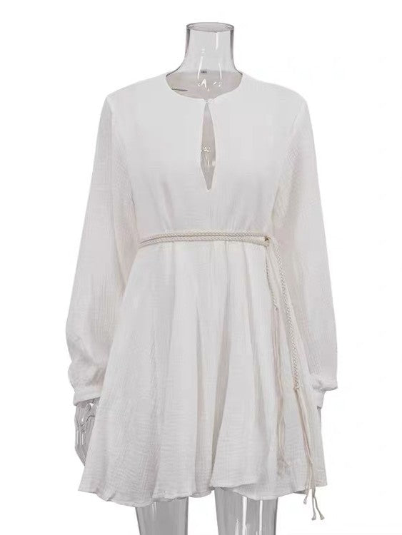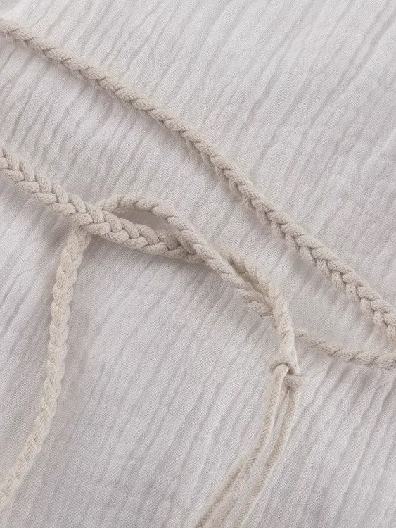 素朴でナチュラルな雰囲気を与えてくれるワンピースは、ロープデザインのベルト付き。
