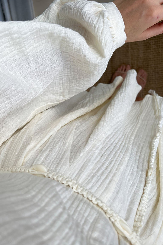 モスリンライクな綿100%の生地は、軽やかでソフトな手触りな着心地◎