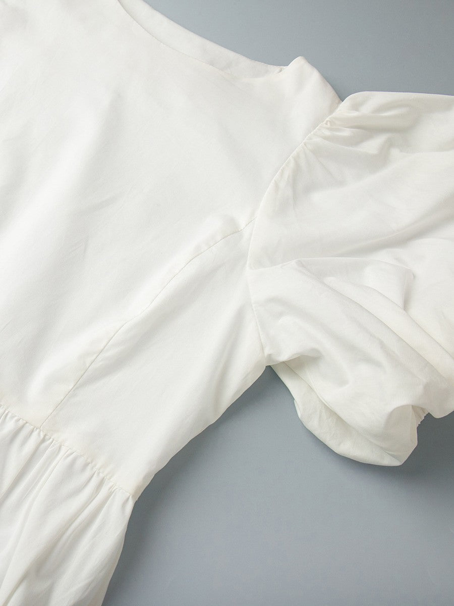 レディライクでロマンティックなムード溢れるワンピースは、バルーンショートスリーブとバルーンシルエットのスカートが、トレンドライク!