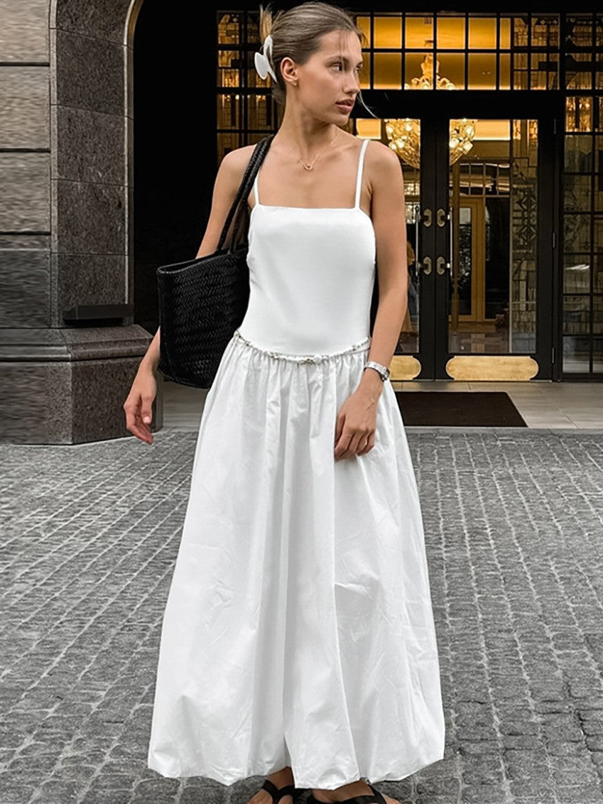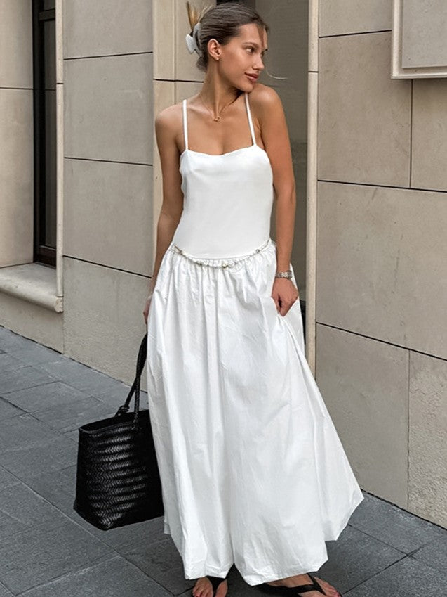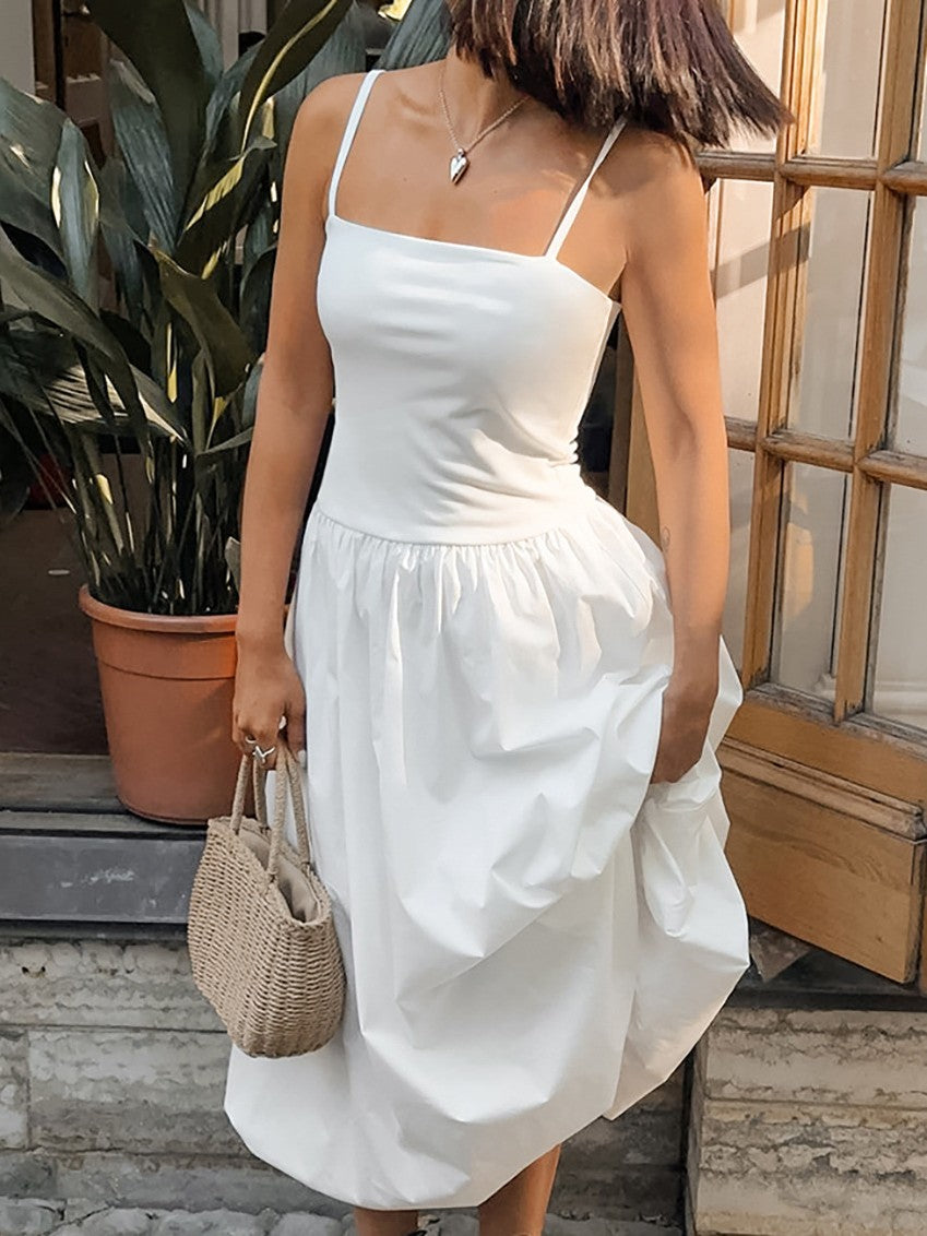 落ち感のあるウエスト切り替えギャザーデザインのキャミソールワンピースは、たっぶり入ったギャザーが女性らしい優雅なスタイルに。