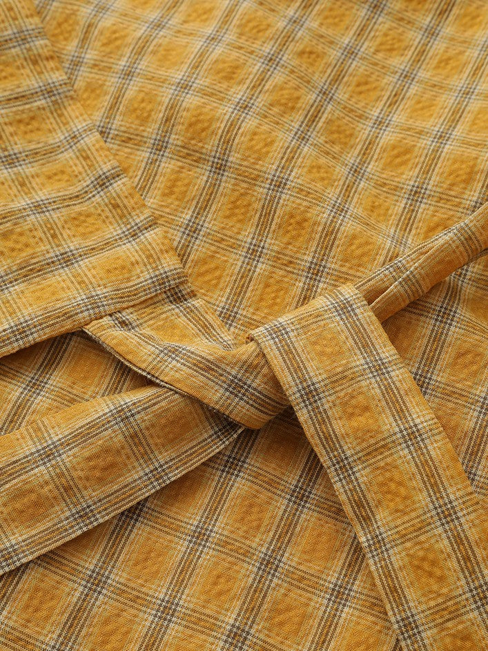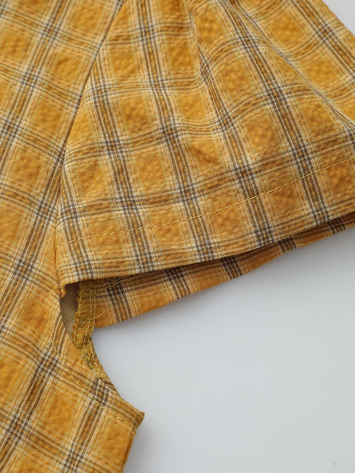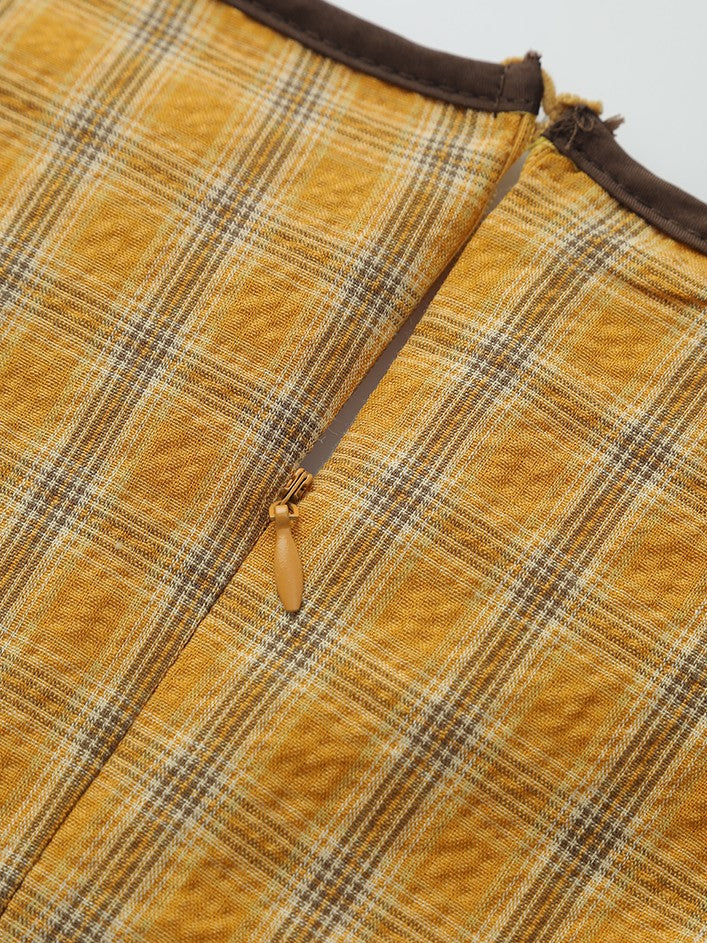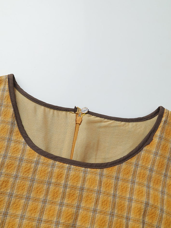 チェック柄エプロン付きレトロワンピース