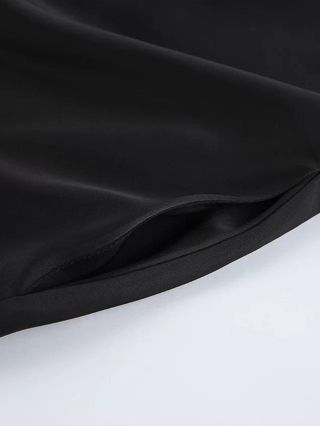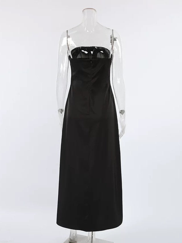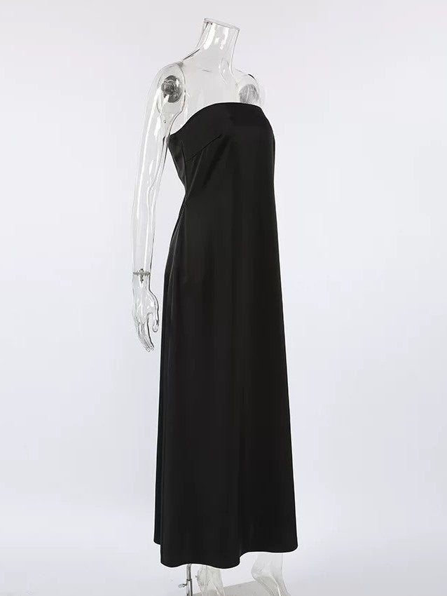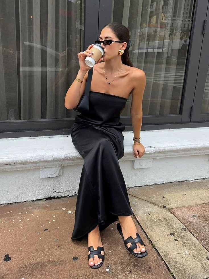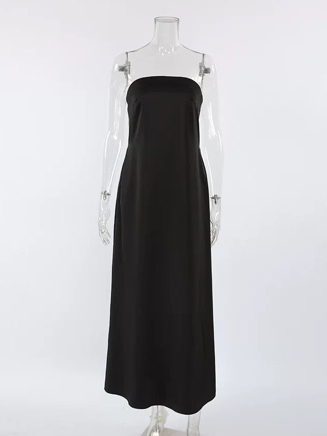 光沢感のある生地でソリッドカラーのモダンなスリーブレスロングワンピースは、大人っぽくどんなシーンでも自信をくれるシックな表情で、すとんと仕立てたストレートシルエットは、ボディラインを出さずにスマートに魅せます。