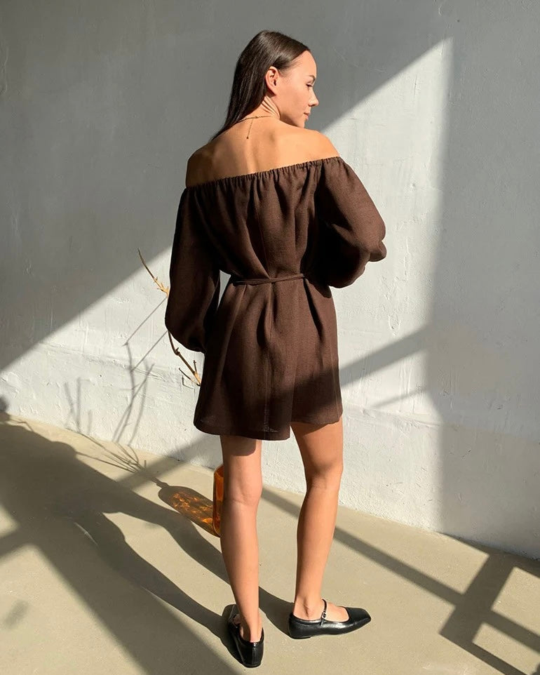 ボリュームのあるバルーン袖とすっきり見えるデコルテラインがバランス良く、華奢見えします。