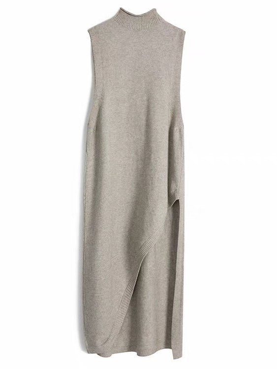 〈サスティナブル〉アシメスリット ニットロングワンピースです。