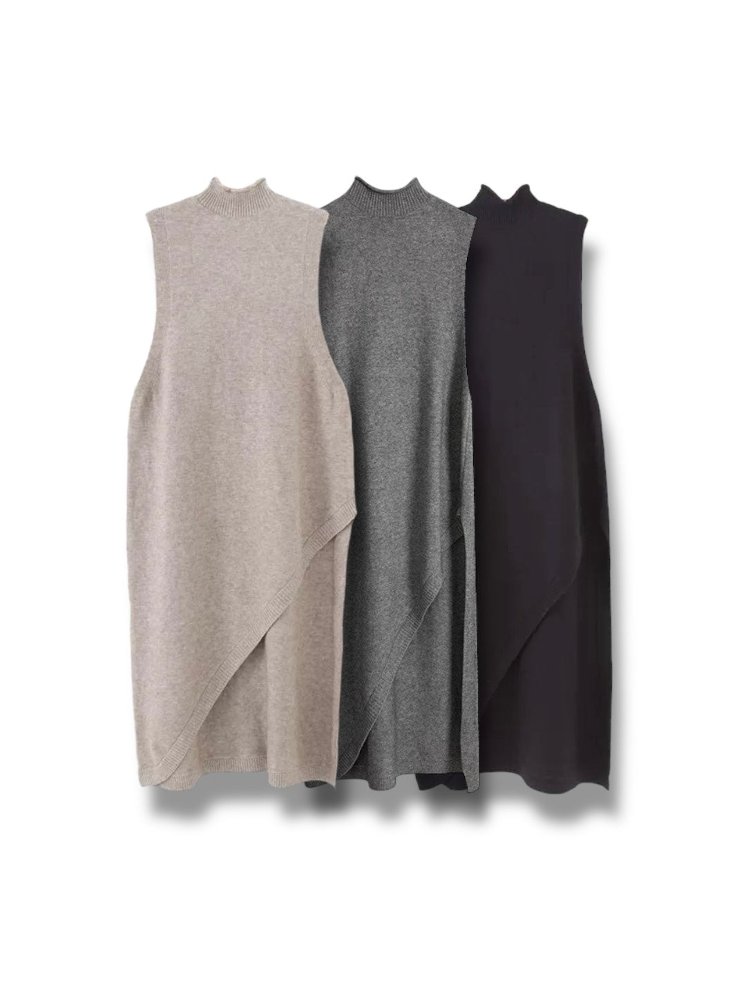 アシメスリットが足元に軽さをプラス◎Iラインでスタイルアップ効果◎アームホールが広く、中に重ねやすくインナー次第で表情が変わる“着回しワンピ”