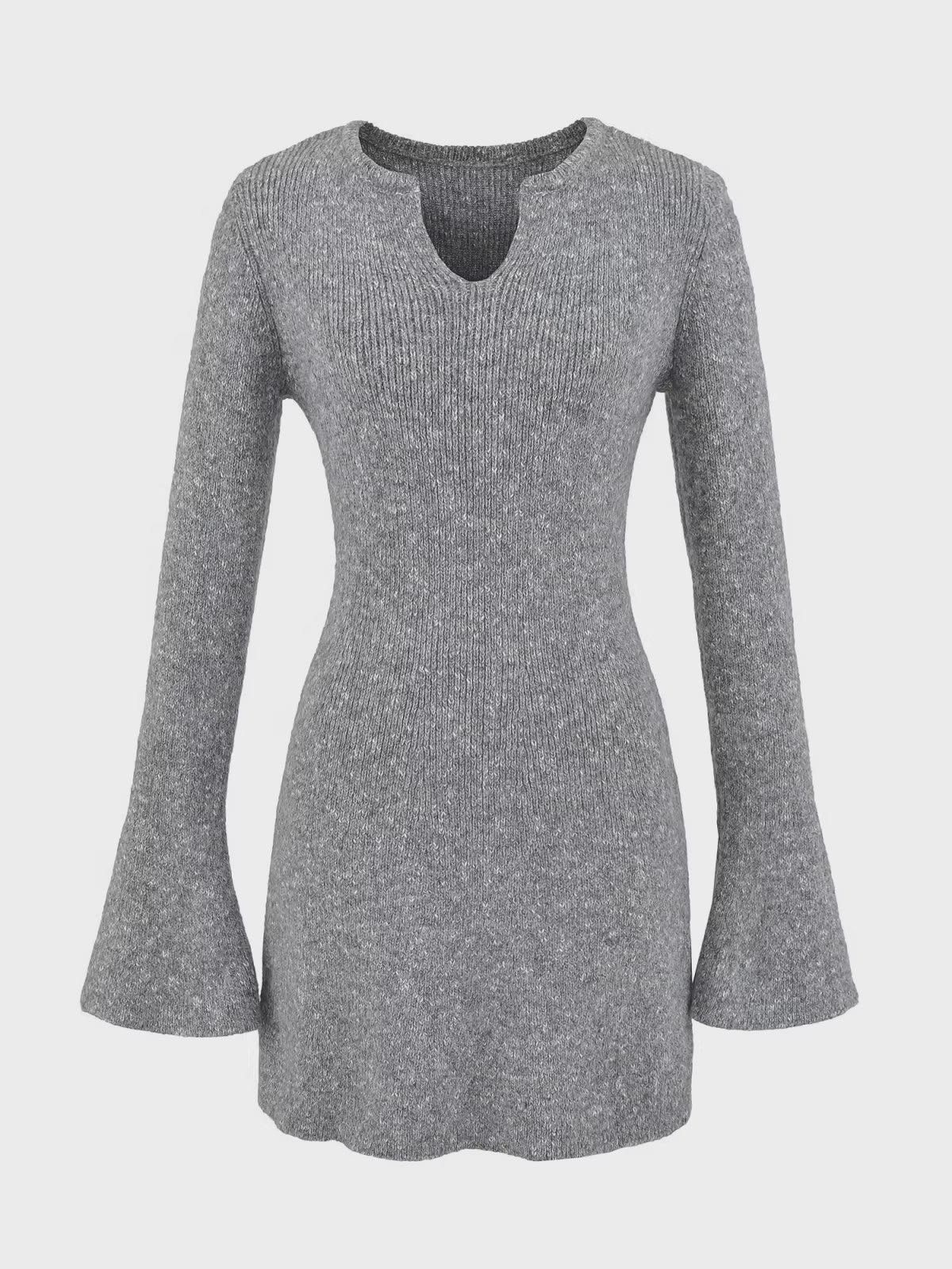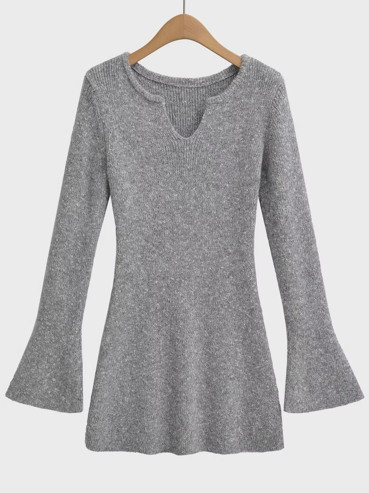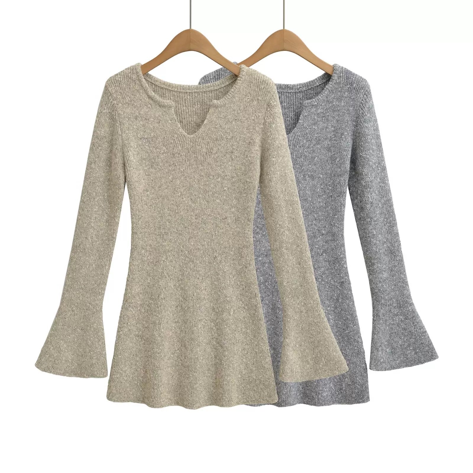 フレアスリーブメランジニットミニワンピースです。