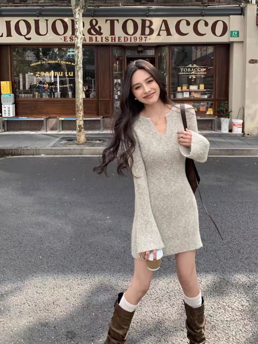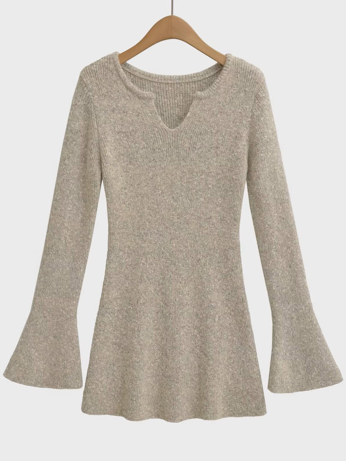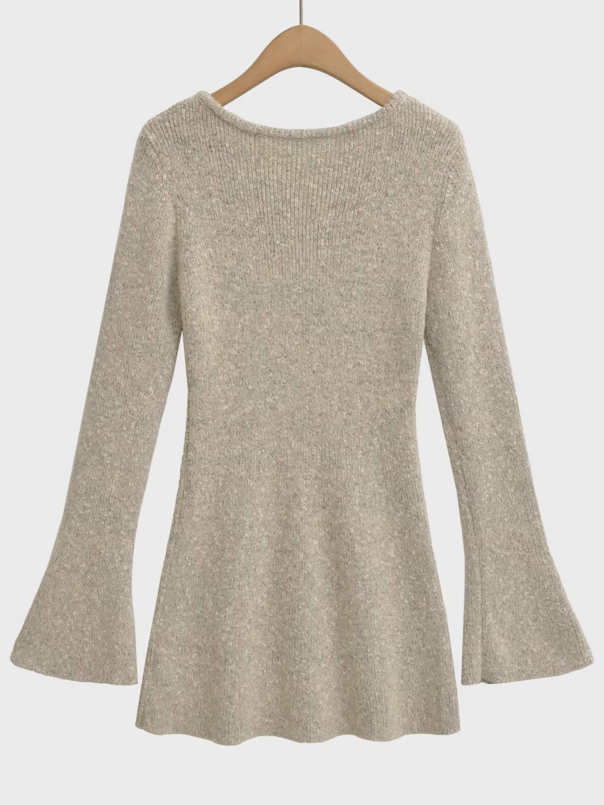 フレアスリーブメランジニットミニワンピースです。