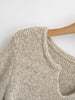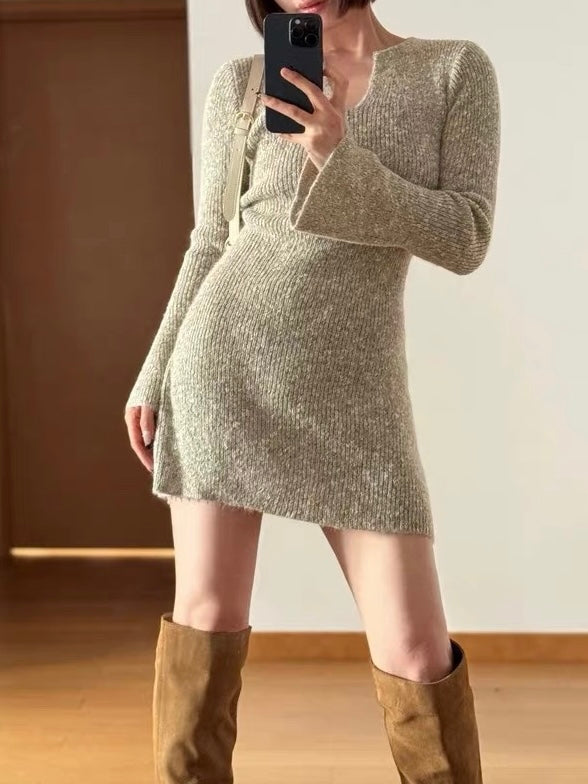 上品なくすみカラーと柔らかな風合いが魅力のニットワンピース。白糸や濃淡カラーが自然に混ざり合う“メランジ編地”が、シンプルながら奥行きのある雰囲気を演出します。