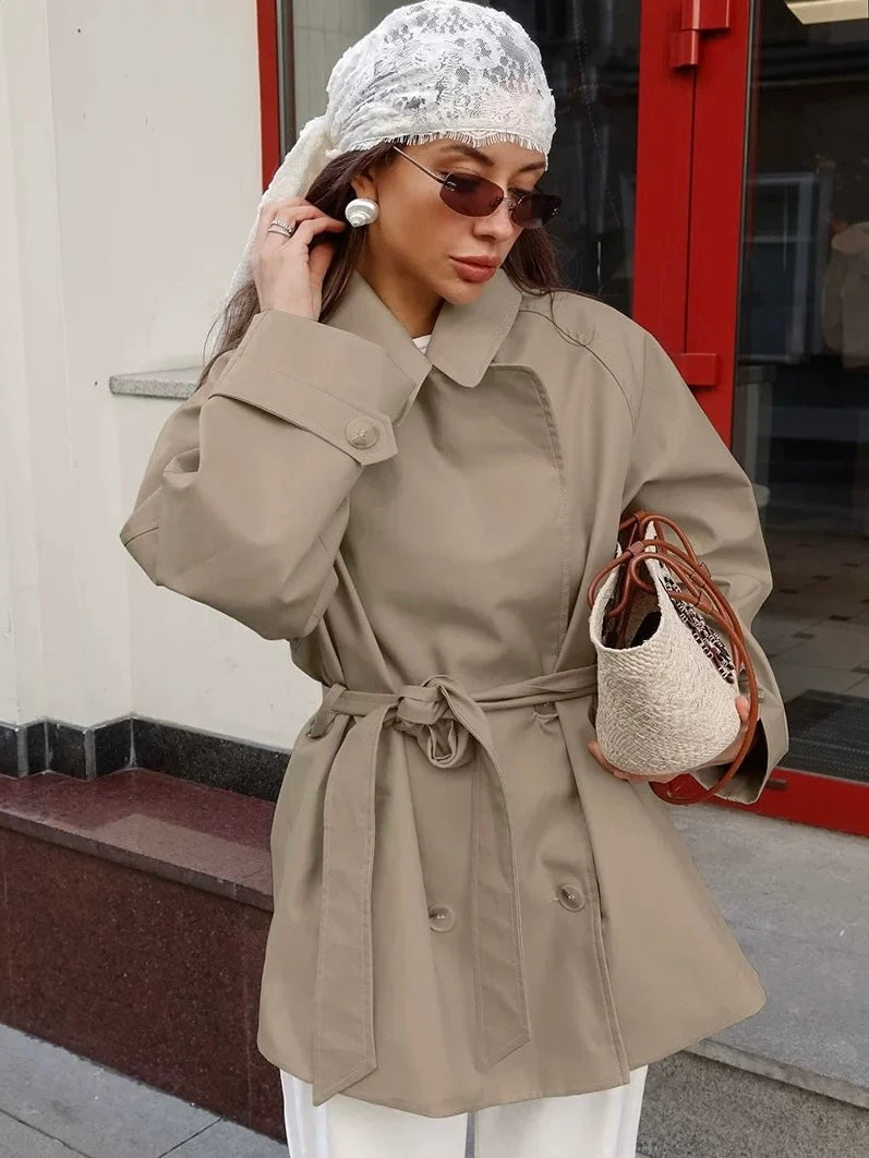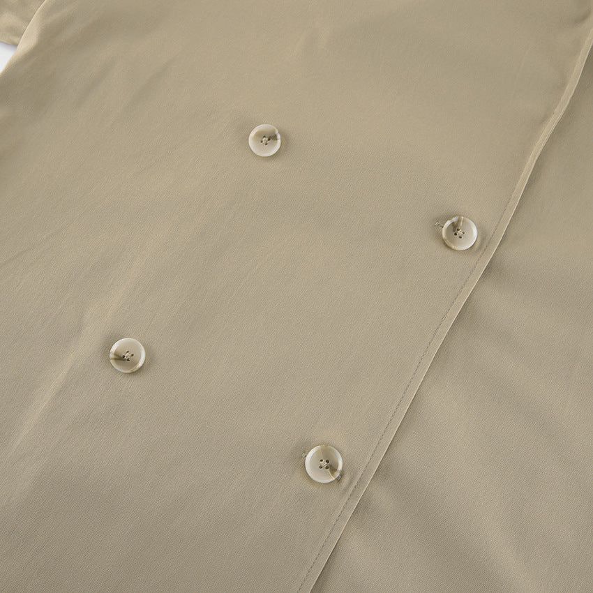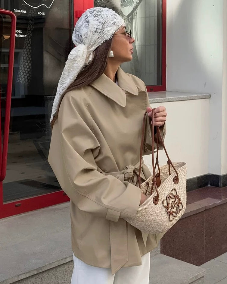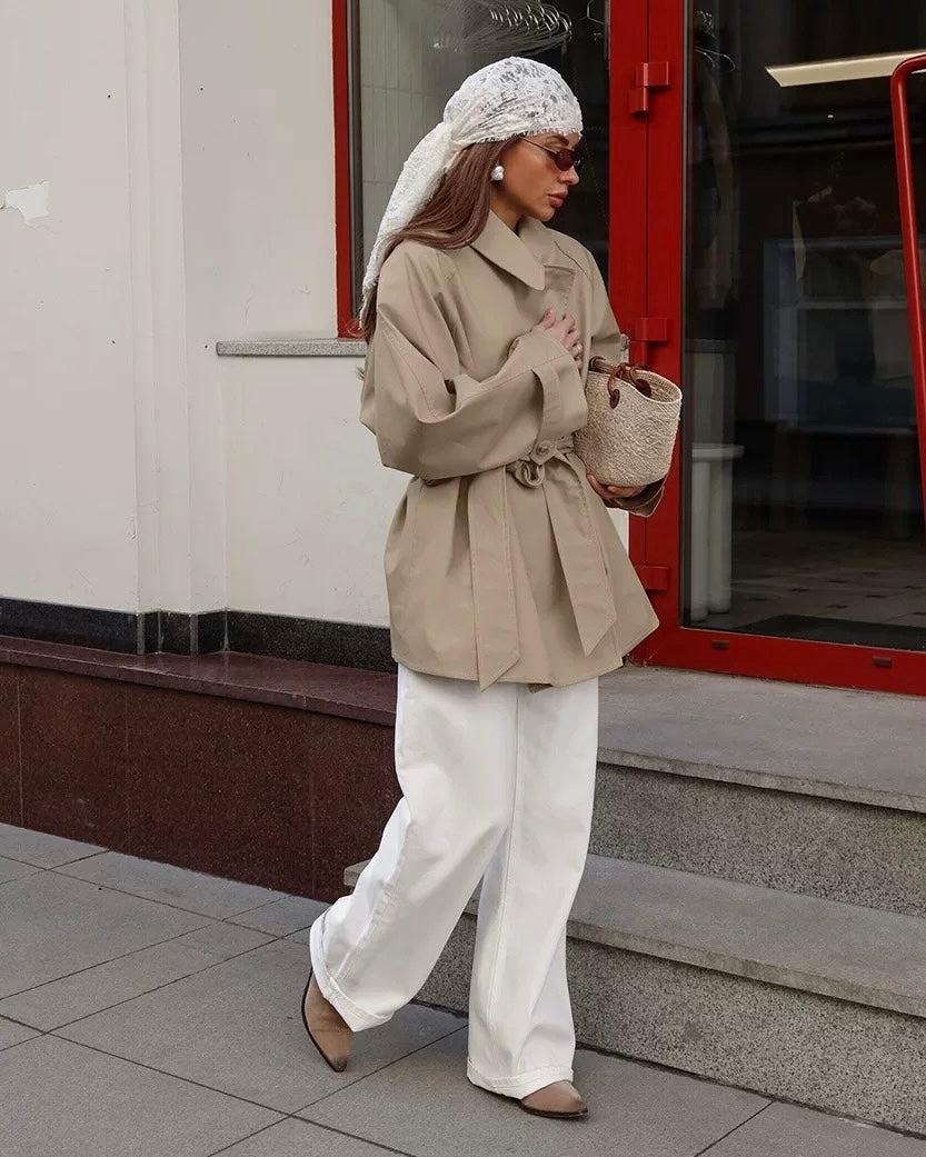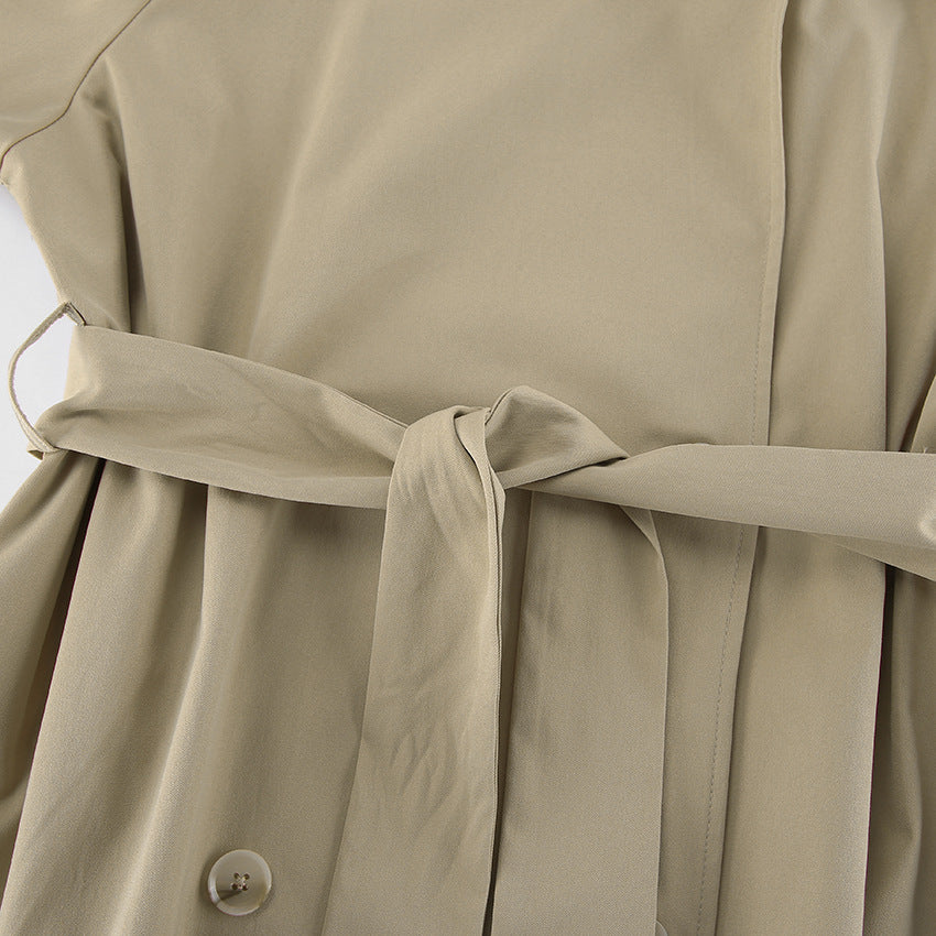 ヒップが隠れるハーフ丈のトレンチコートは、ワイドなパンツやルーズなデニムなど、ボトムスとの相性もGOOD.