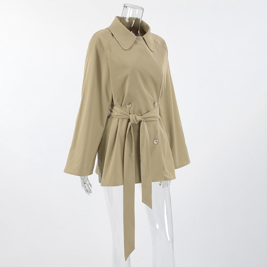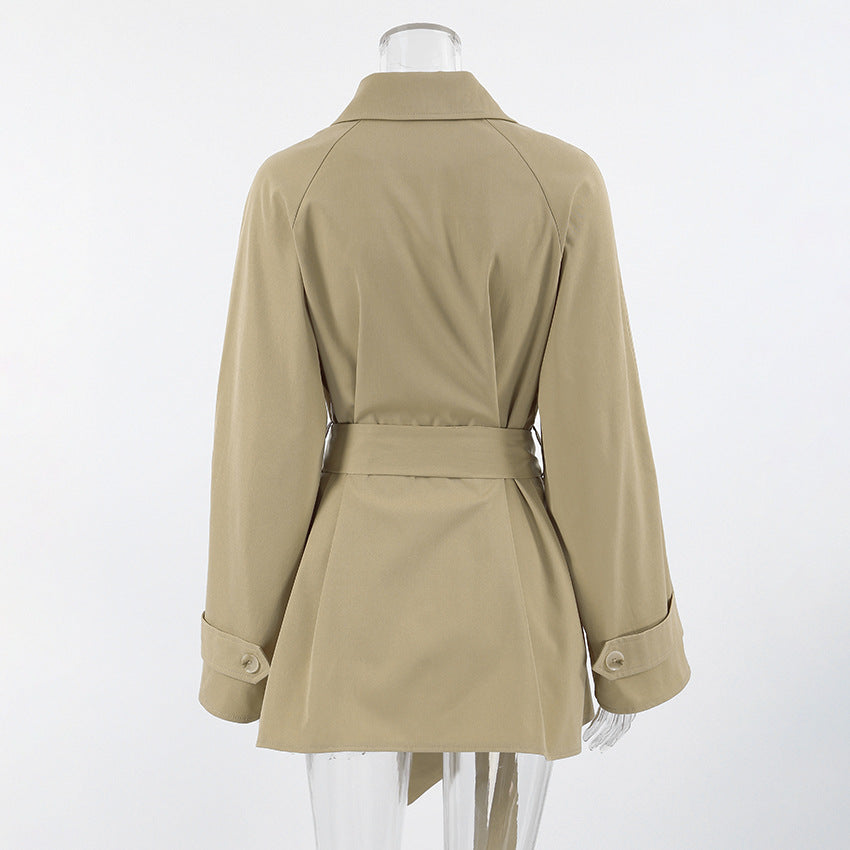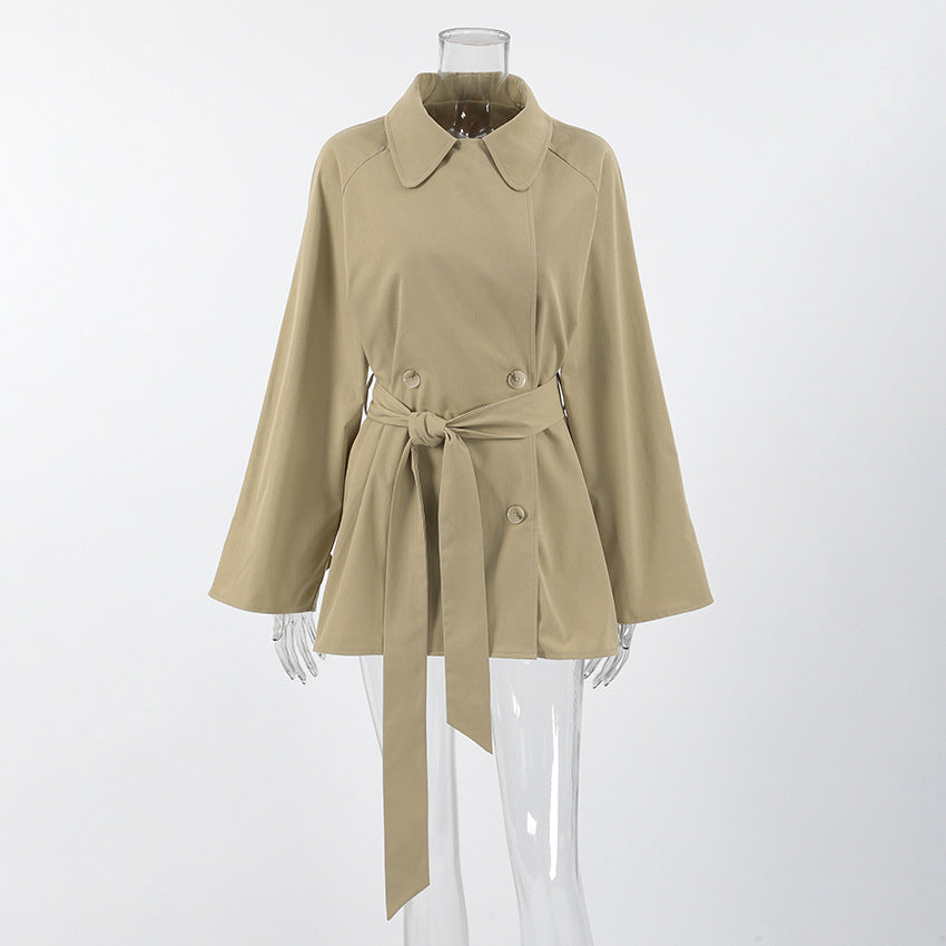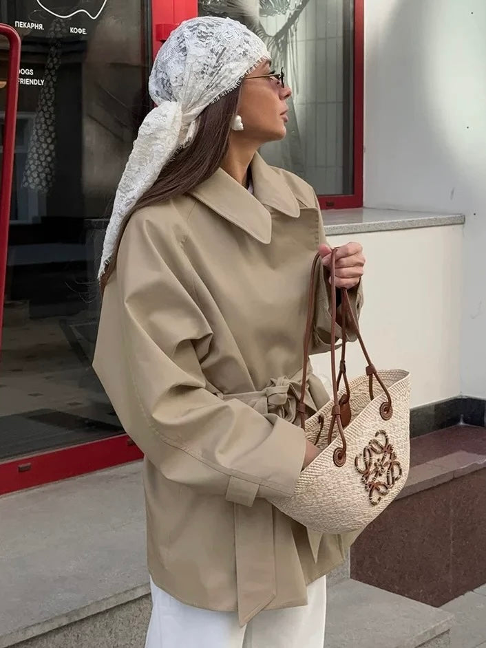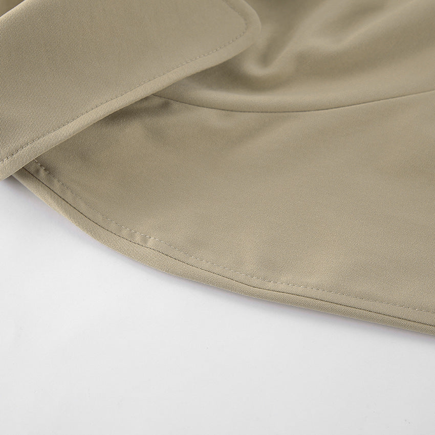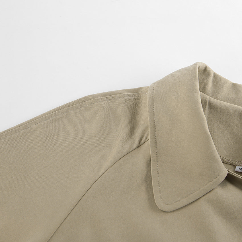 ヒップが隠れるハーフ丈のトレンチコートは、ワイドなパンツやルーズなデニムなど、ボトムスとの相性もGOOD.