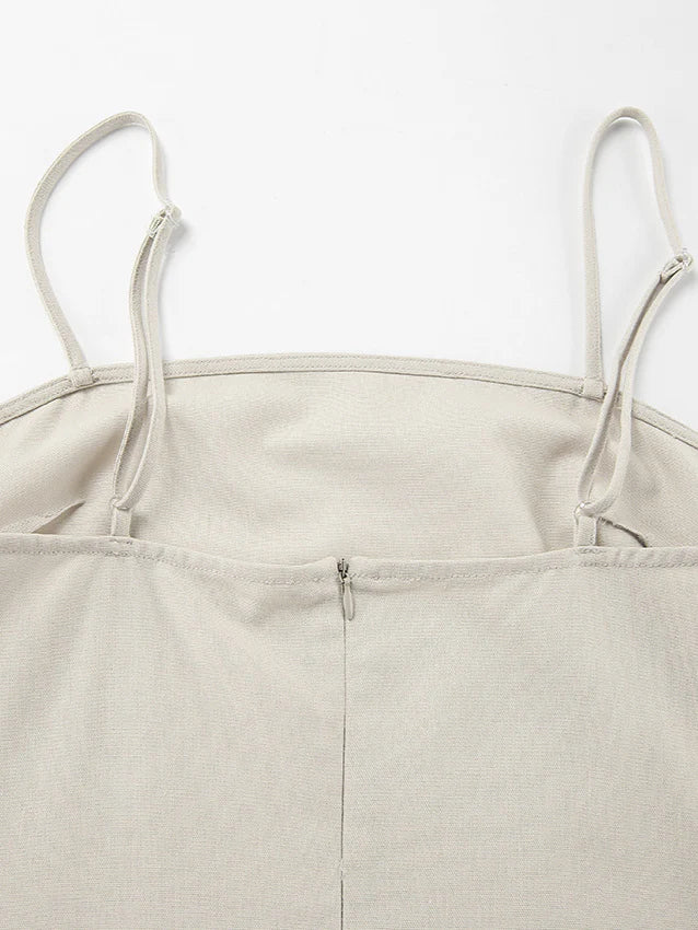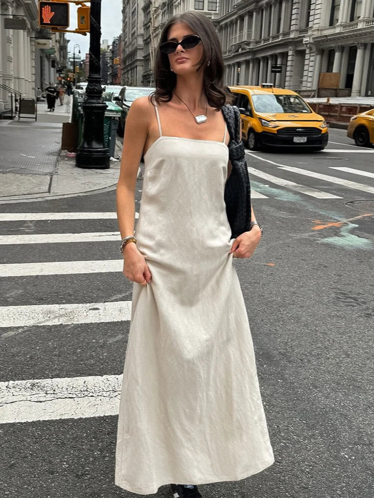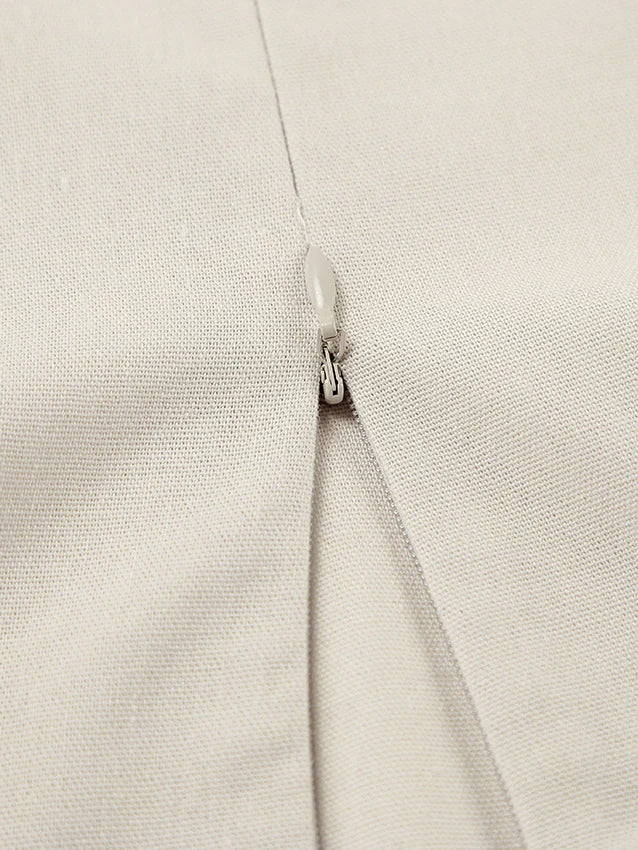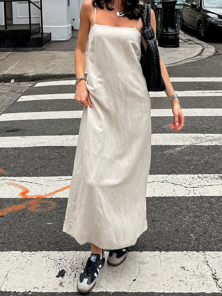 シンプルに1枚で着こなしてもサマになるワンピースは、リネン入りのナチュラルな風合いが魅力。