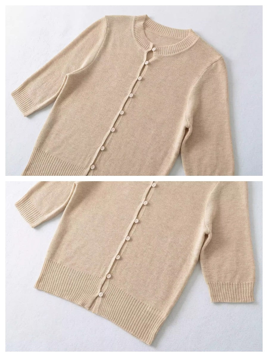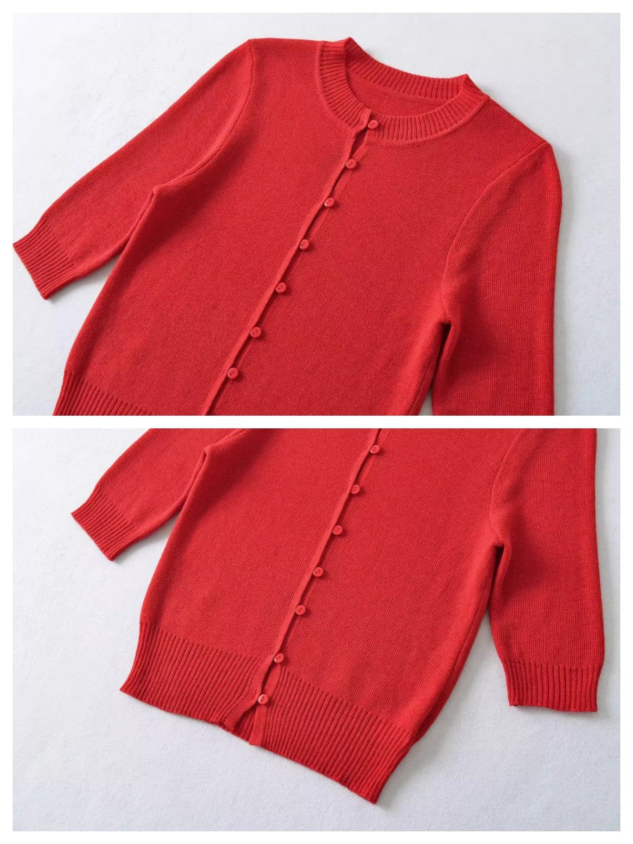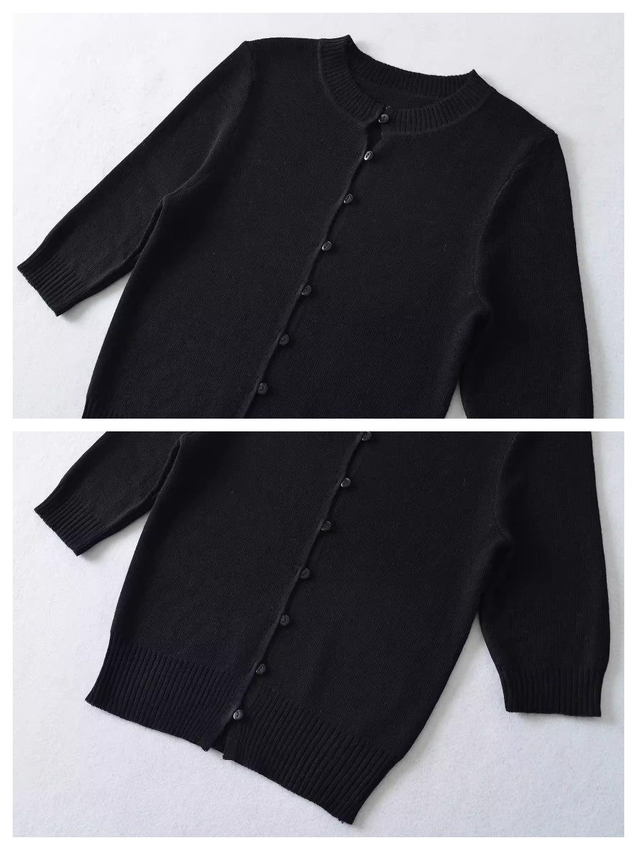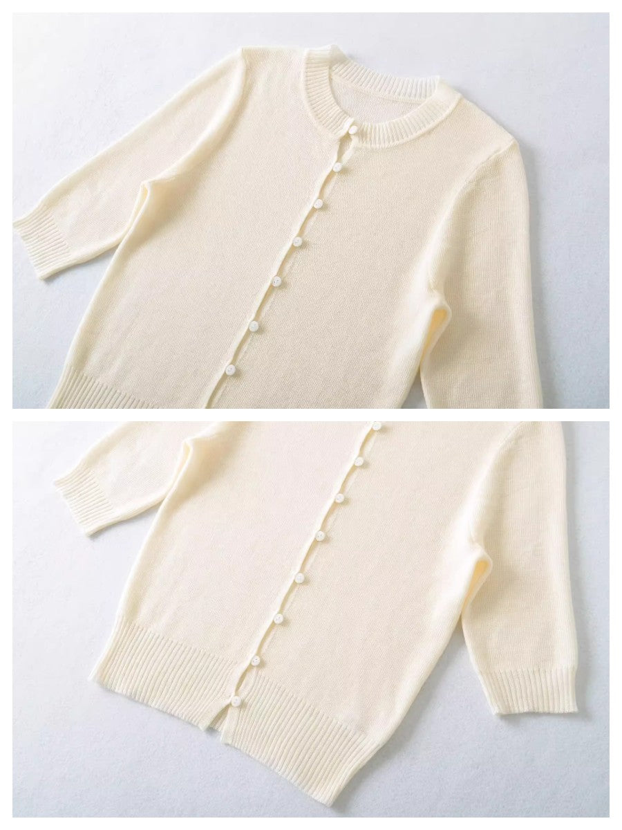 上品なコンパクトシルエットが魅力のハーフスリーブニットカーディガン。