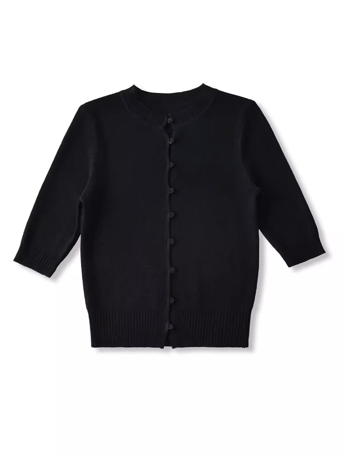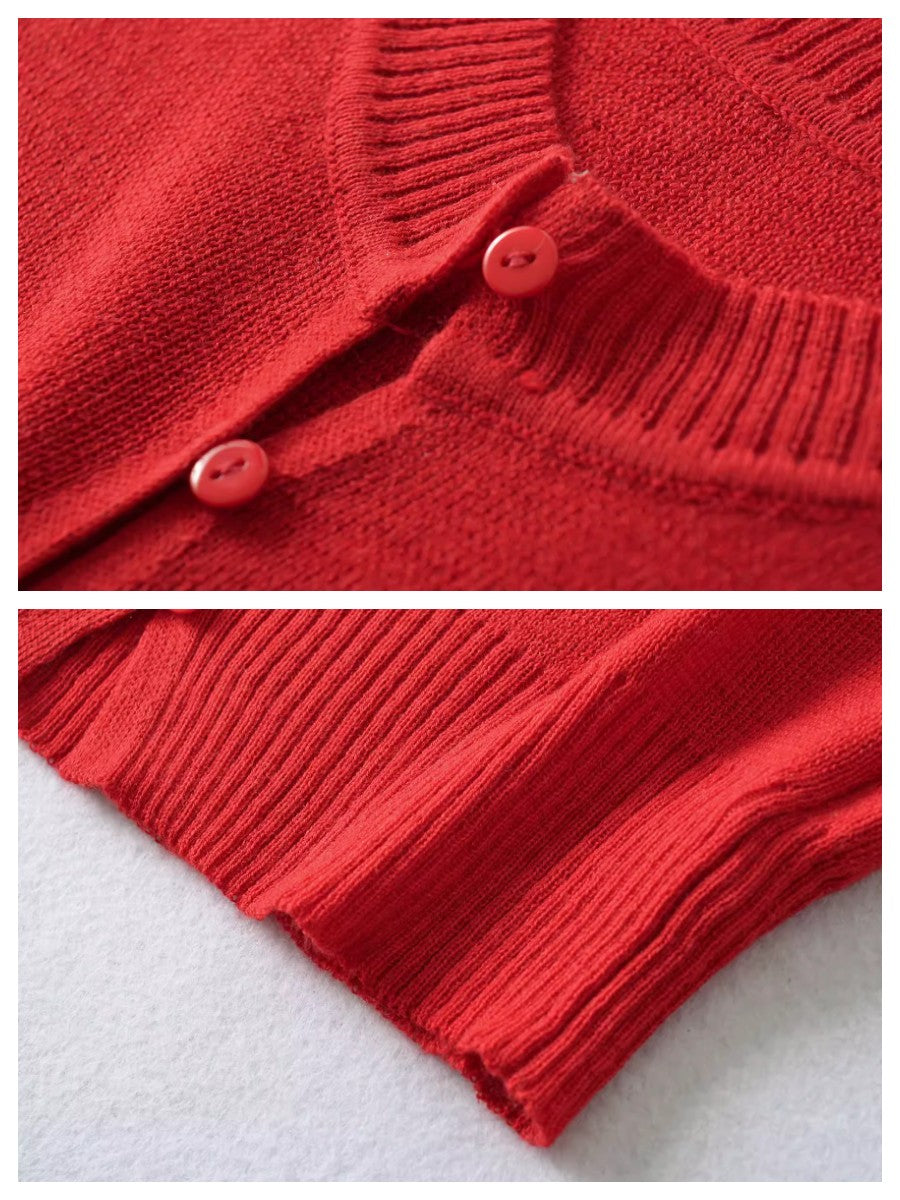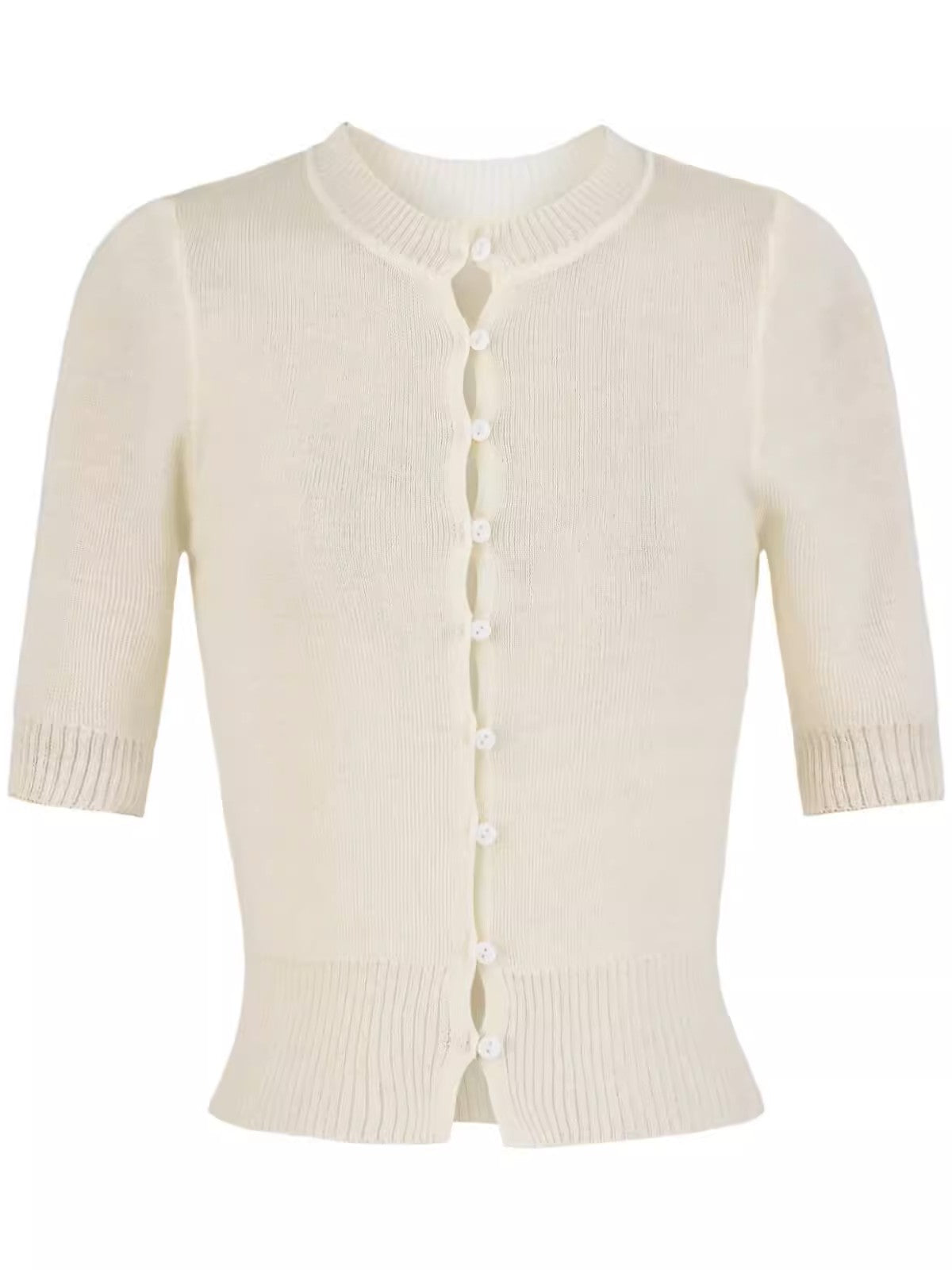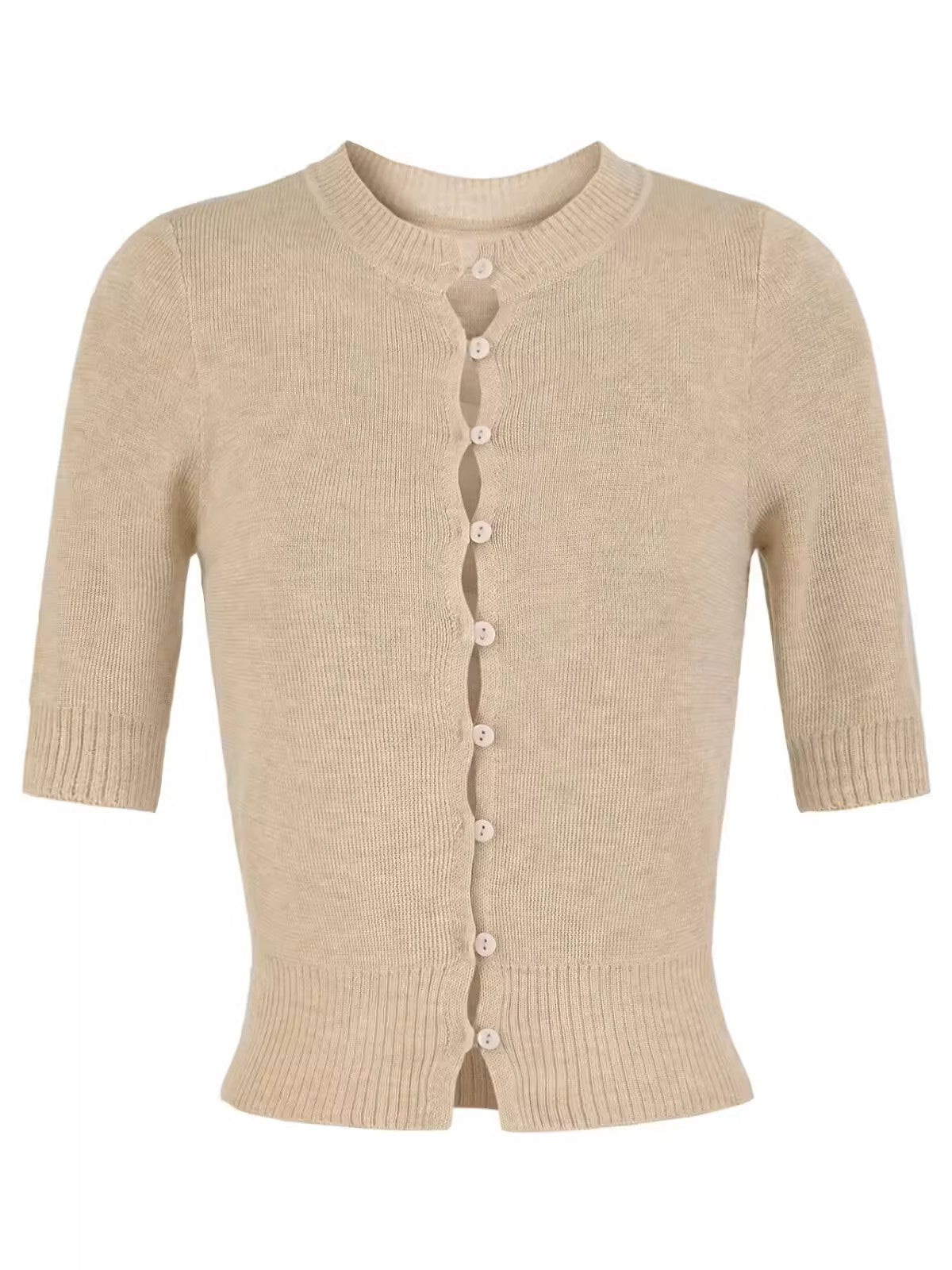 上品なコンパクトシルエットが魅力のハーフスリーブニットカーディガン。