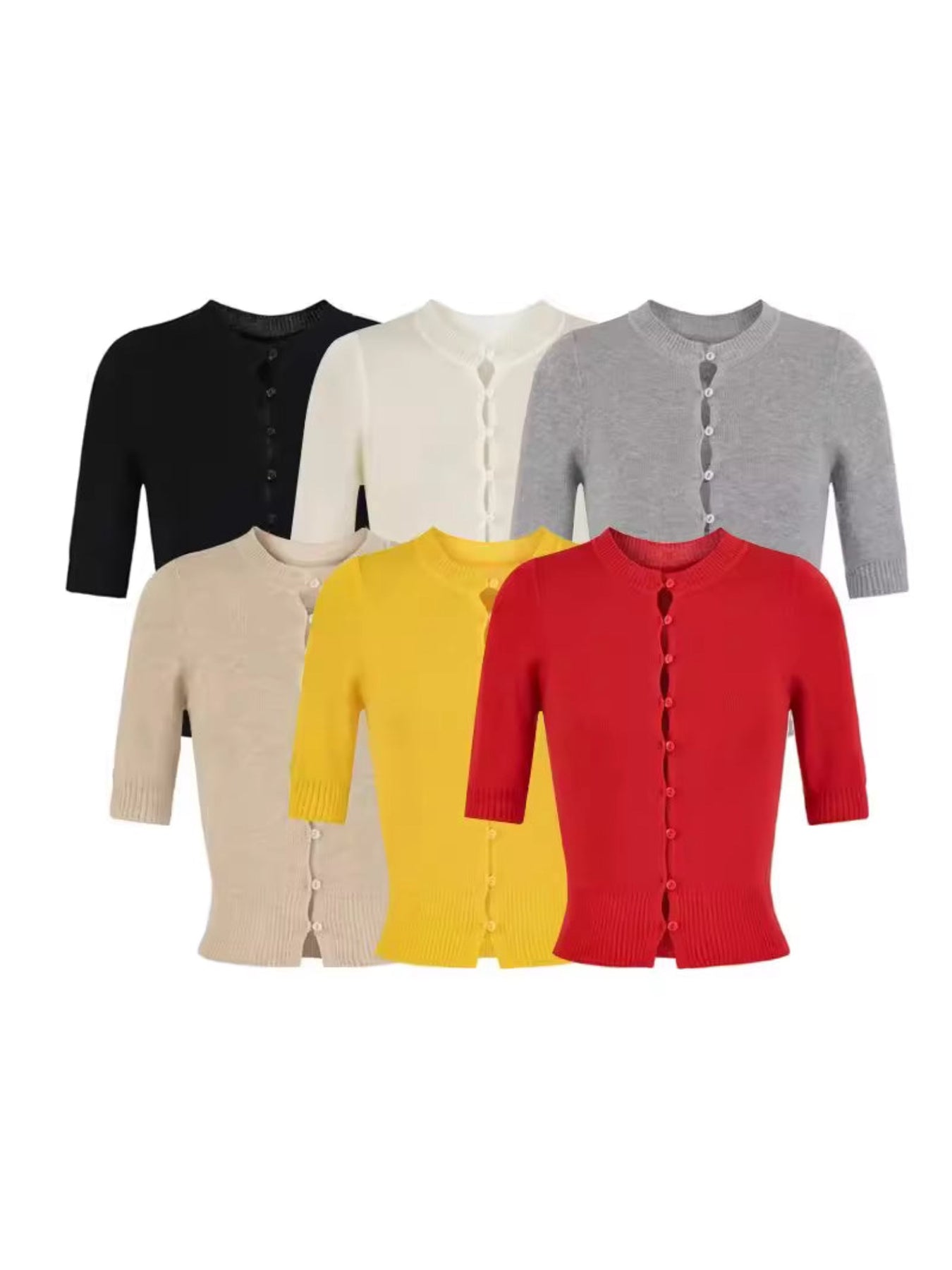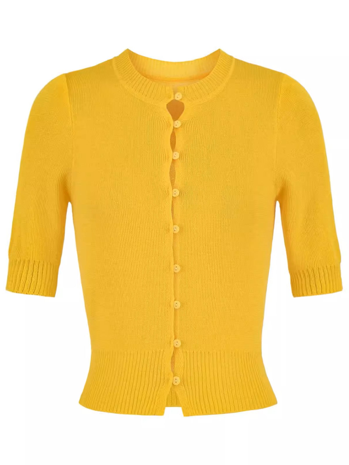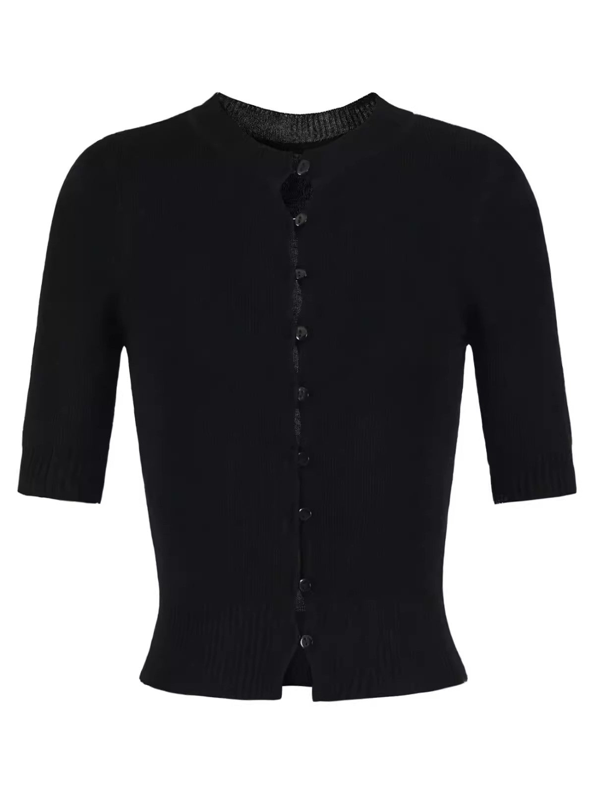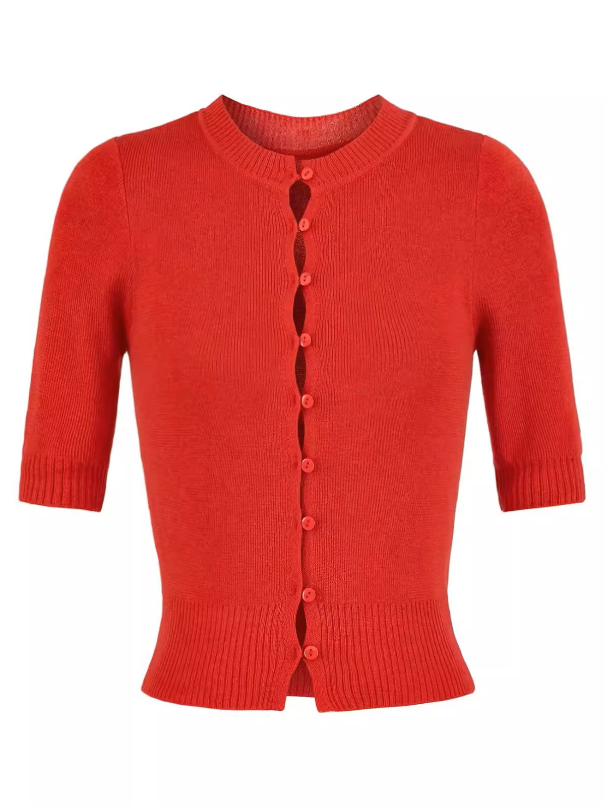 上品なコンパクトシルエットが魅力のハーフスリーブニットカーディガン。