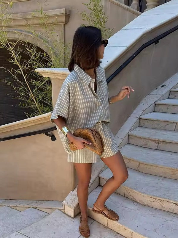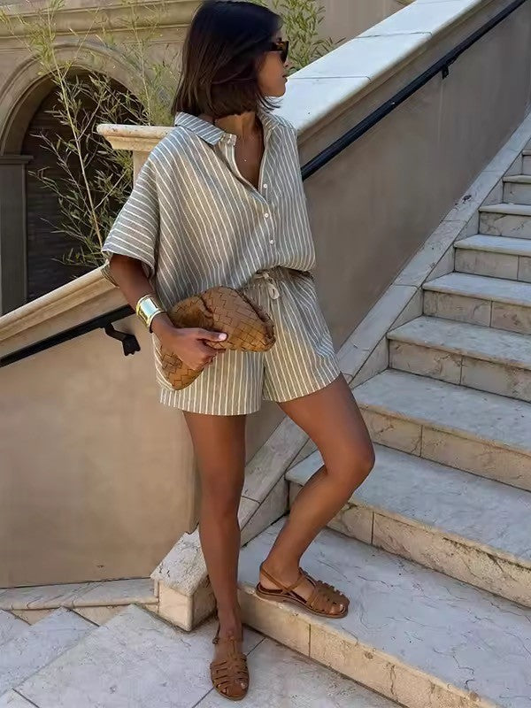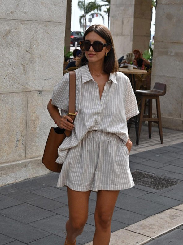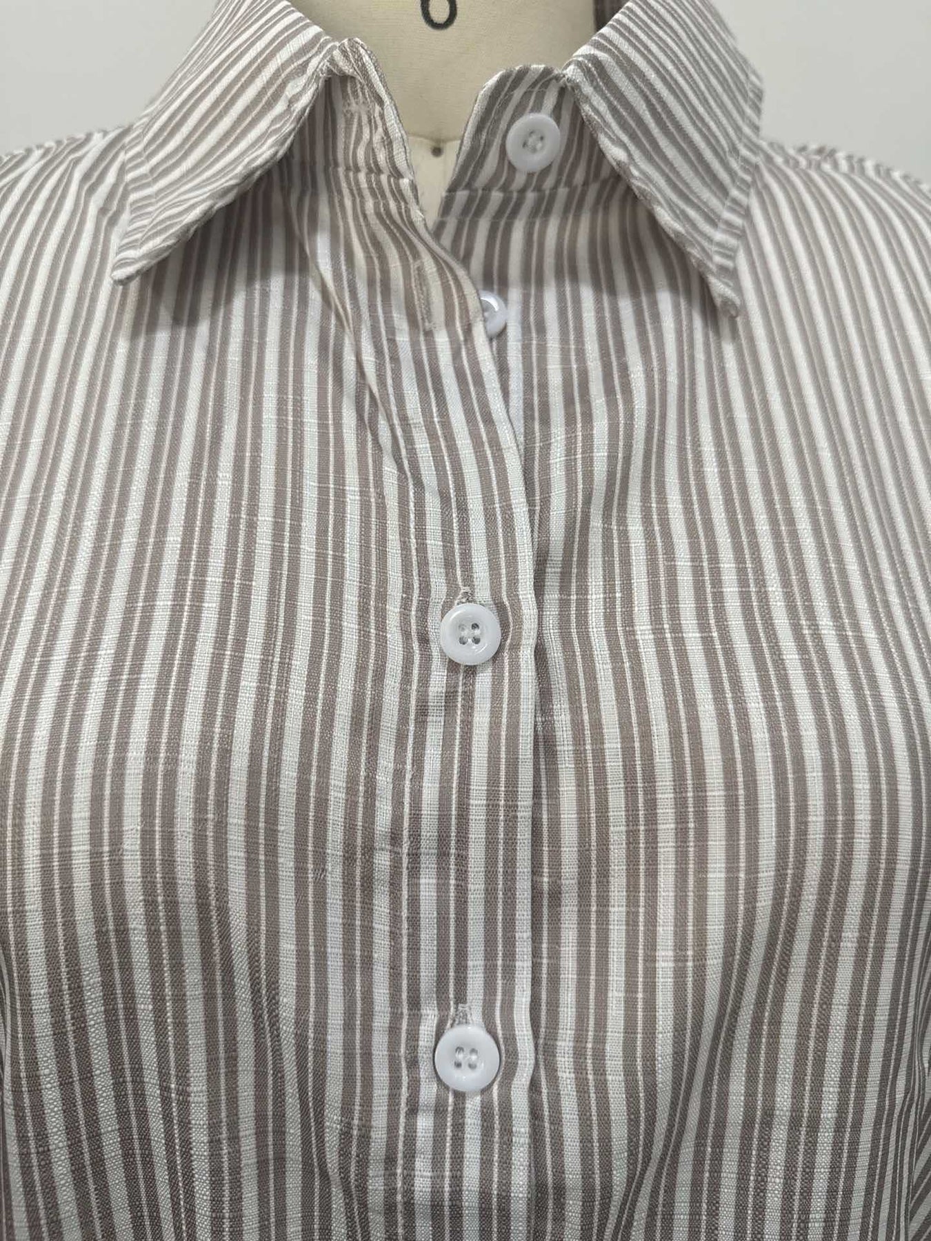 ナチュラルなアースカラーのストライプ柄は様々コーディネートに馴染みやすく、着こなしの幅がぐっと広がります。