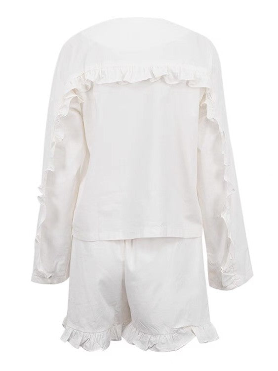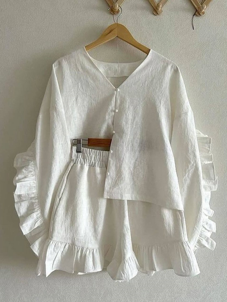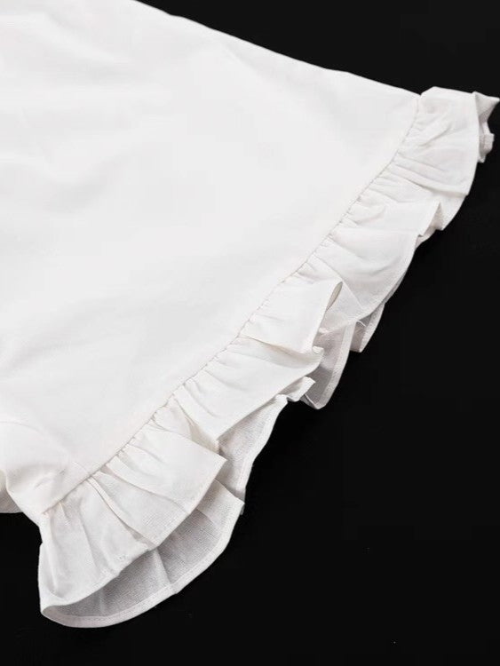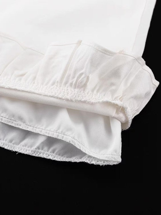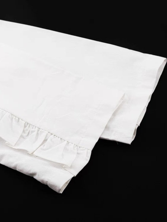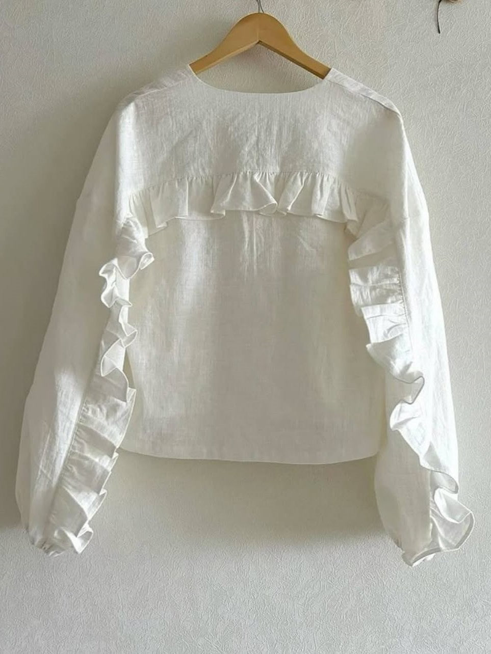ノーカラーのブラウスは、スリーブサイドとバックのフリルディテールがどの角度から見ても映えてお洒落にきまります◎