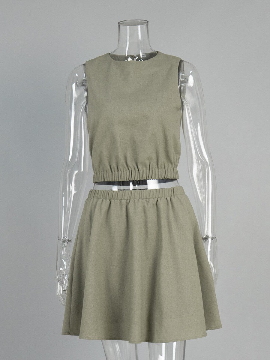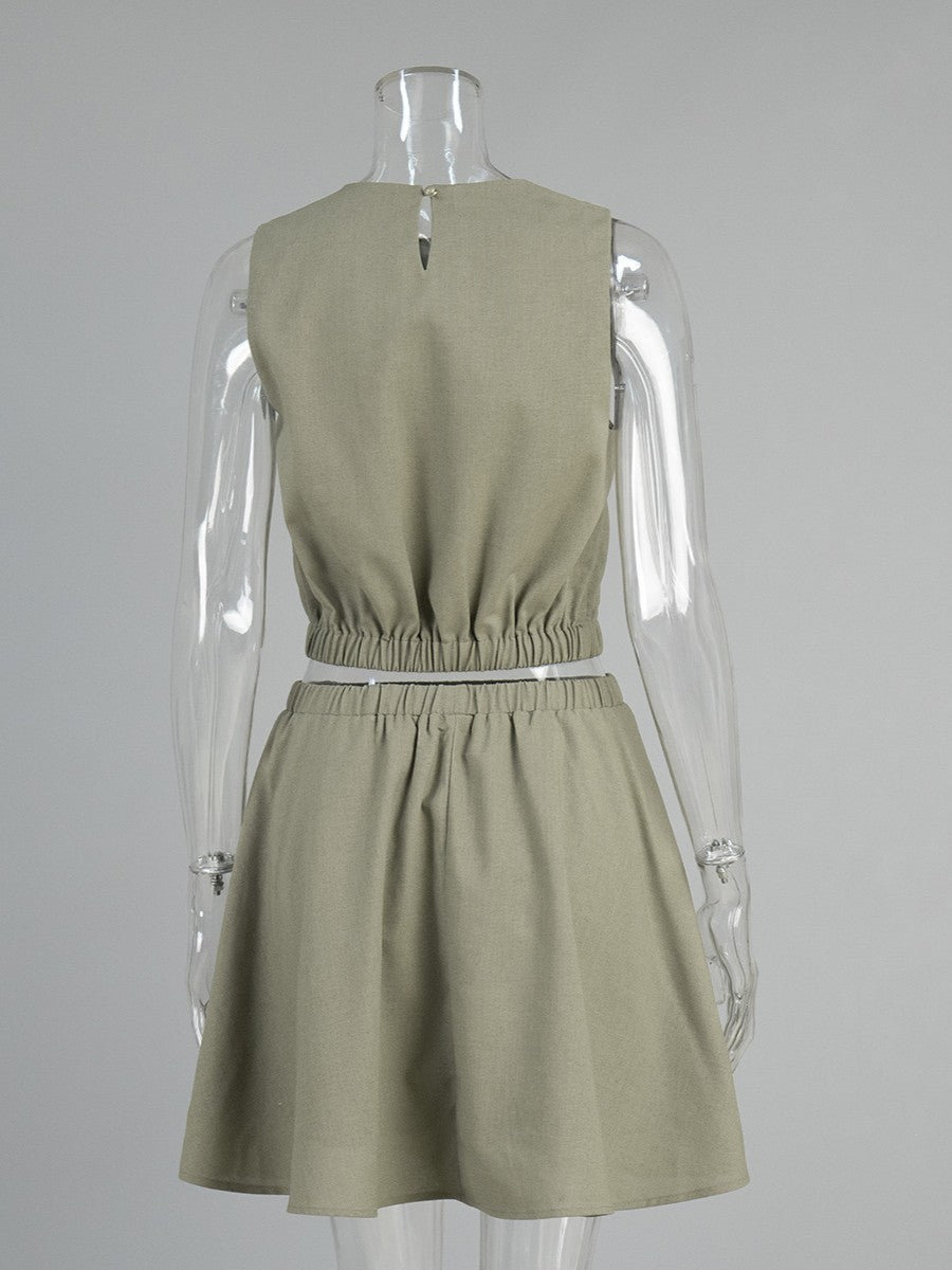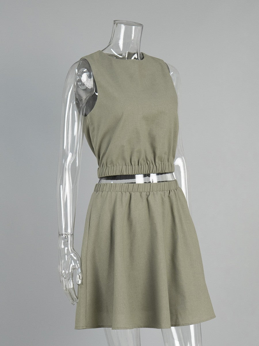 スリーブレスのトップスは、裾にゴムが入っているので自然とウエストをきゅっと引き締めて見せてくれます。スカートはウエストゴムでフレアラインがキュート!裏地もしっかり付いています。