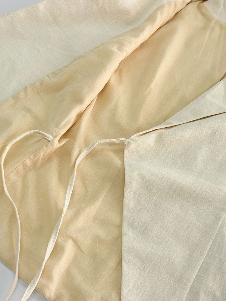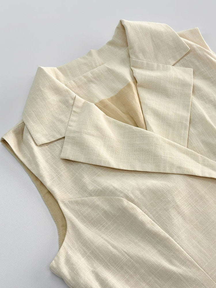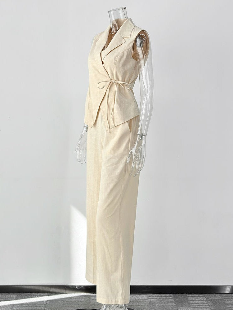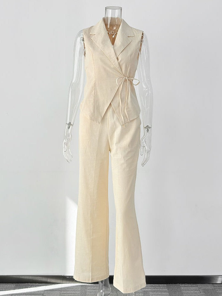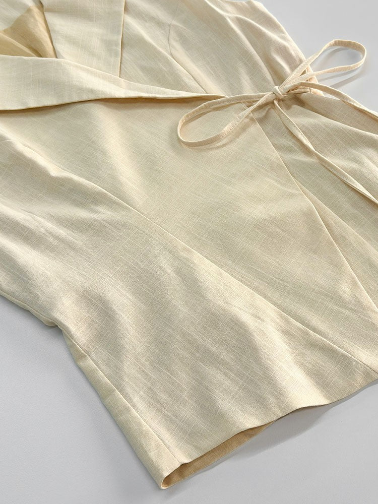ラップタイプのベストはリボンで結ぶので、着用するだけで自然とウエストを引き締めて見せてくれます。