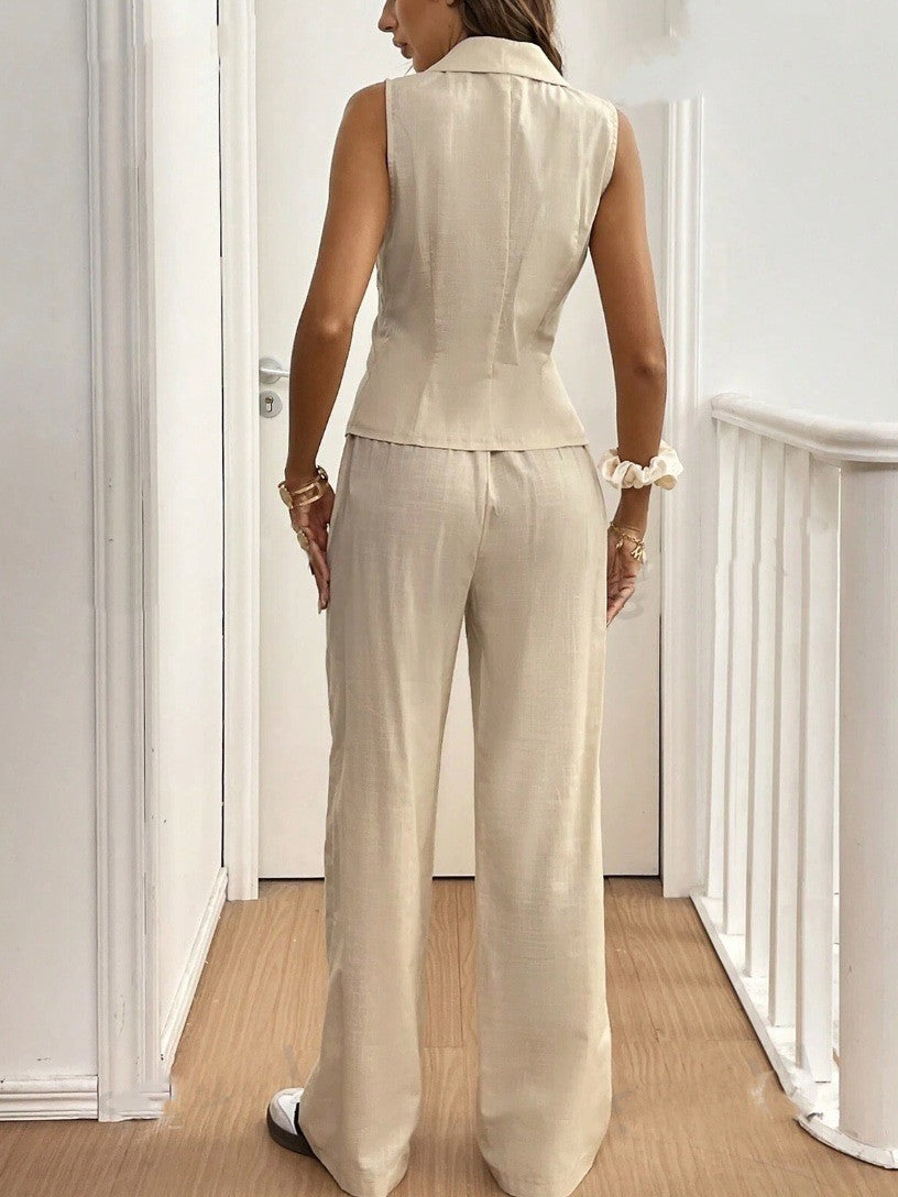 パンツはトラウザーズデザインですがゴム入りで着心地も◎サイドにはポケット付き。