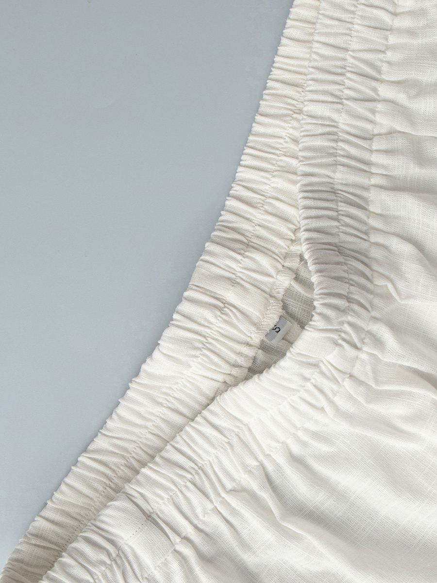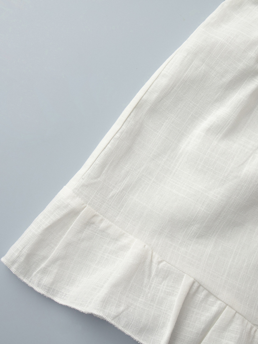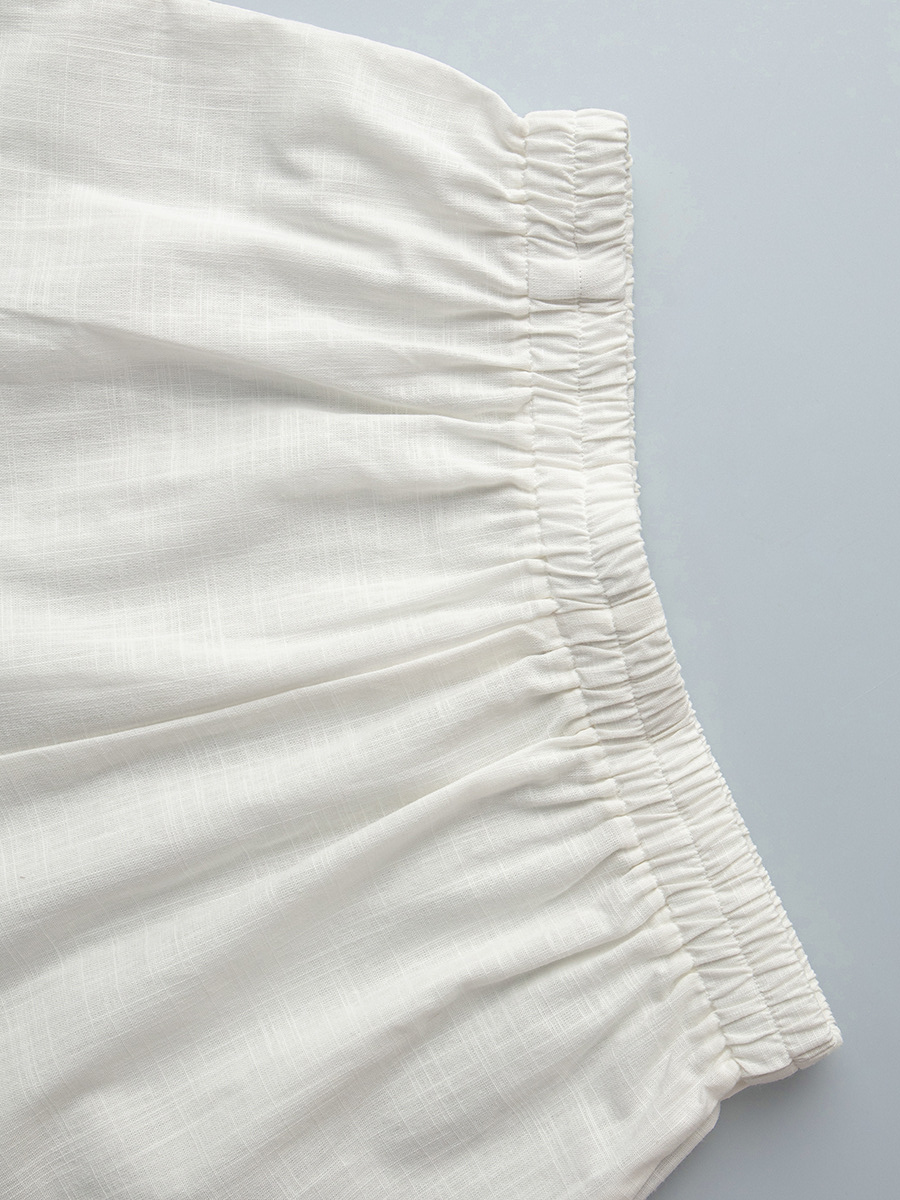 人気のレースアップシリーズに、ジャスト丈にワイドスリーブシルエットで腕が長く見えてスタイルアップ効果も◎ショートパンツはウエストゴム仕様で裾のフリルデザインが、ガーリームードもプラス。