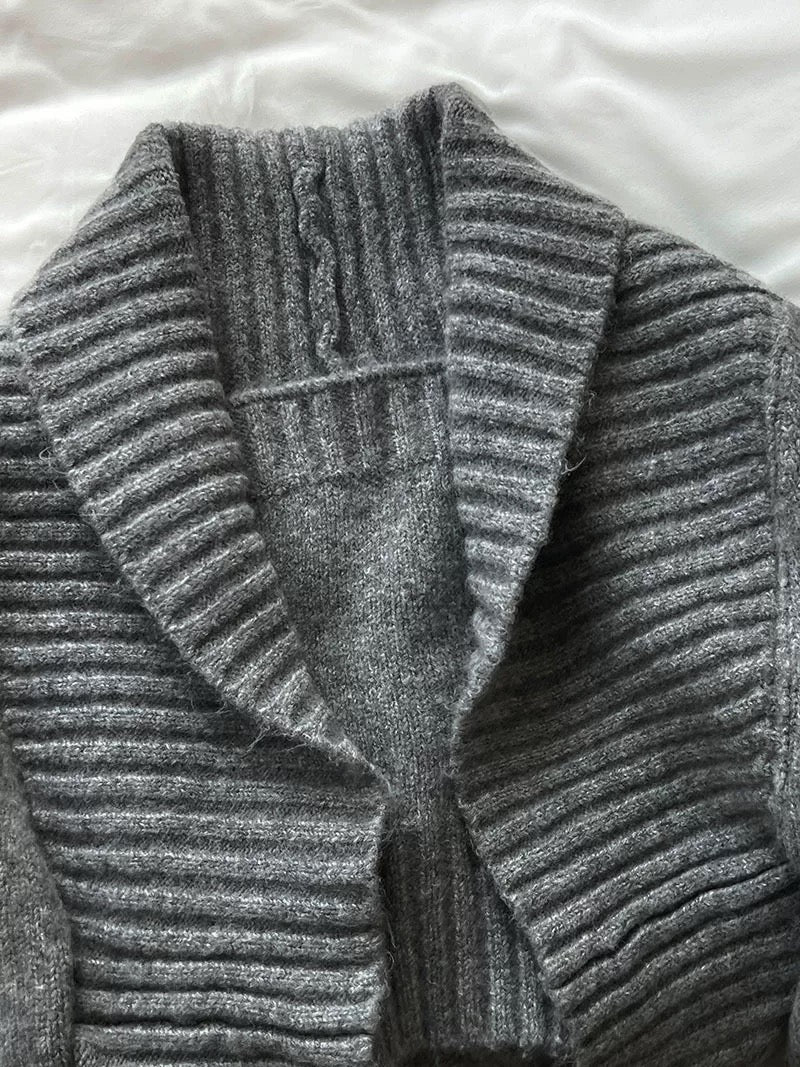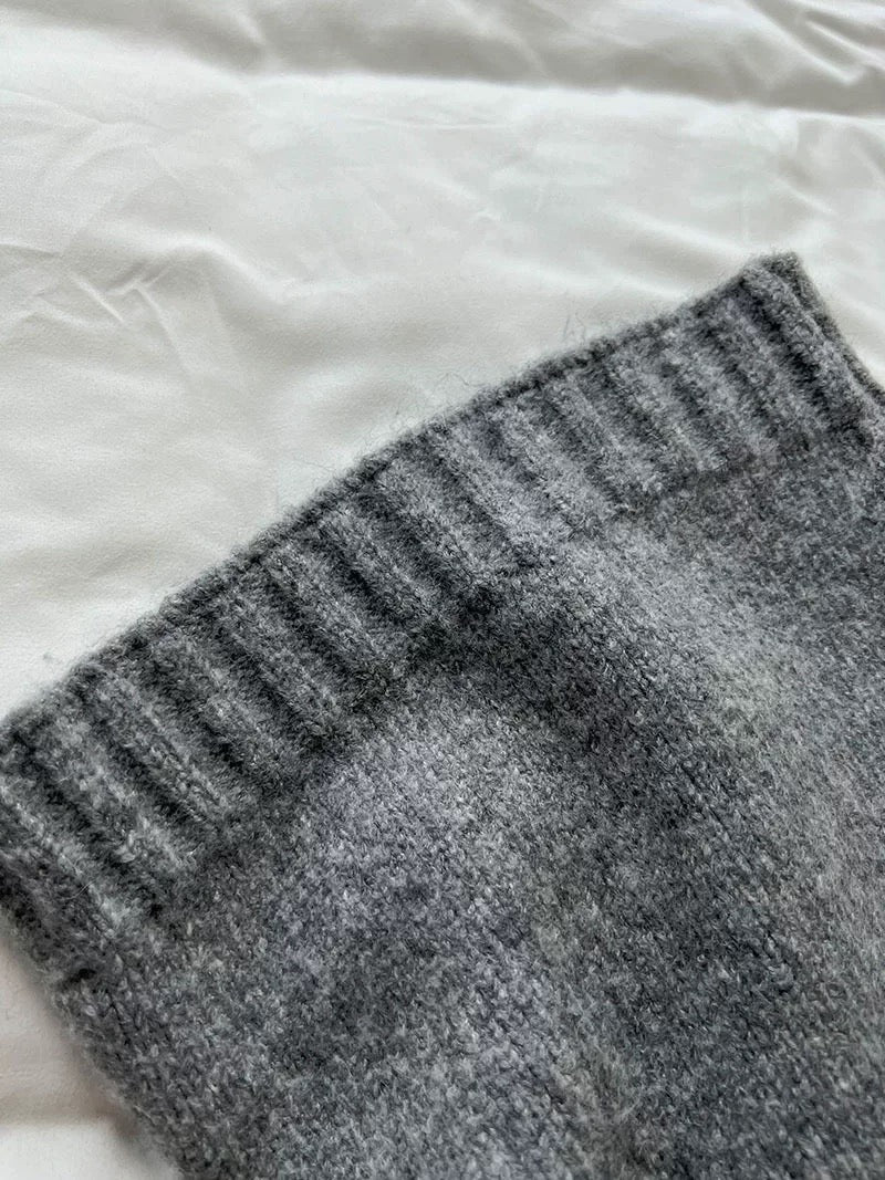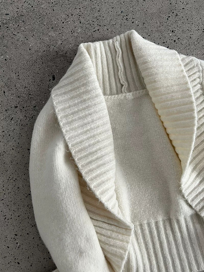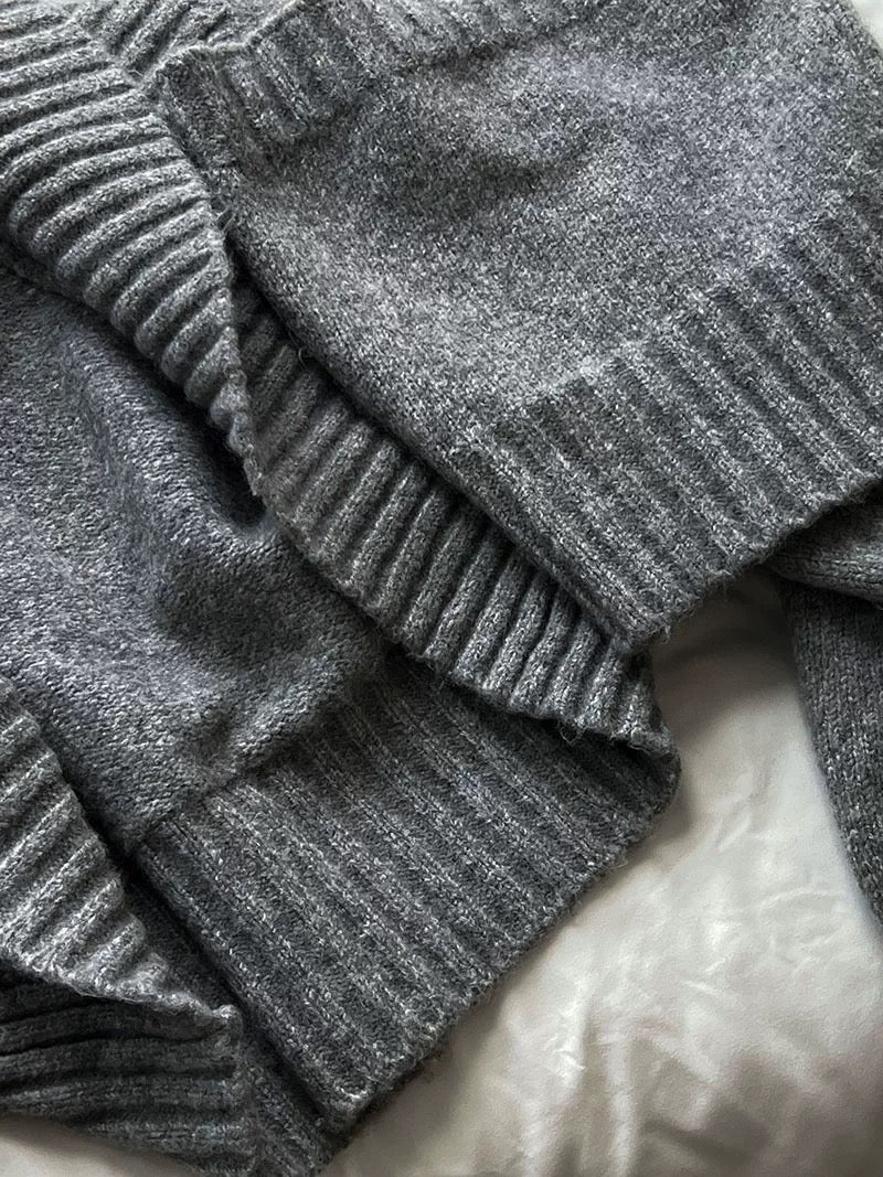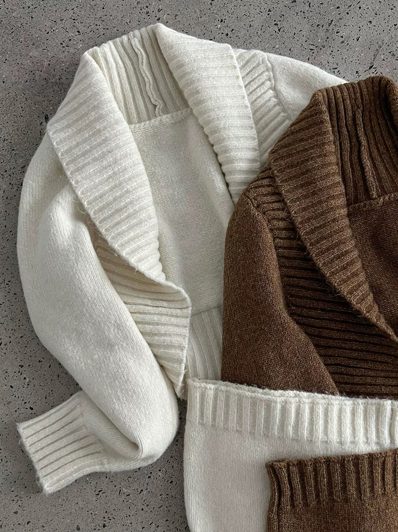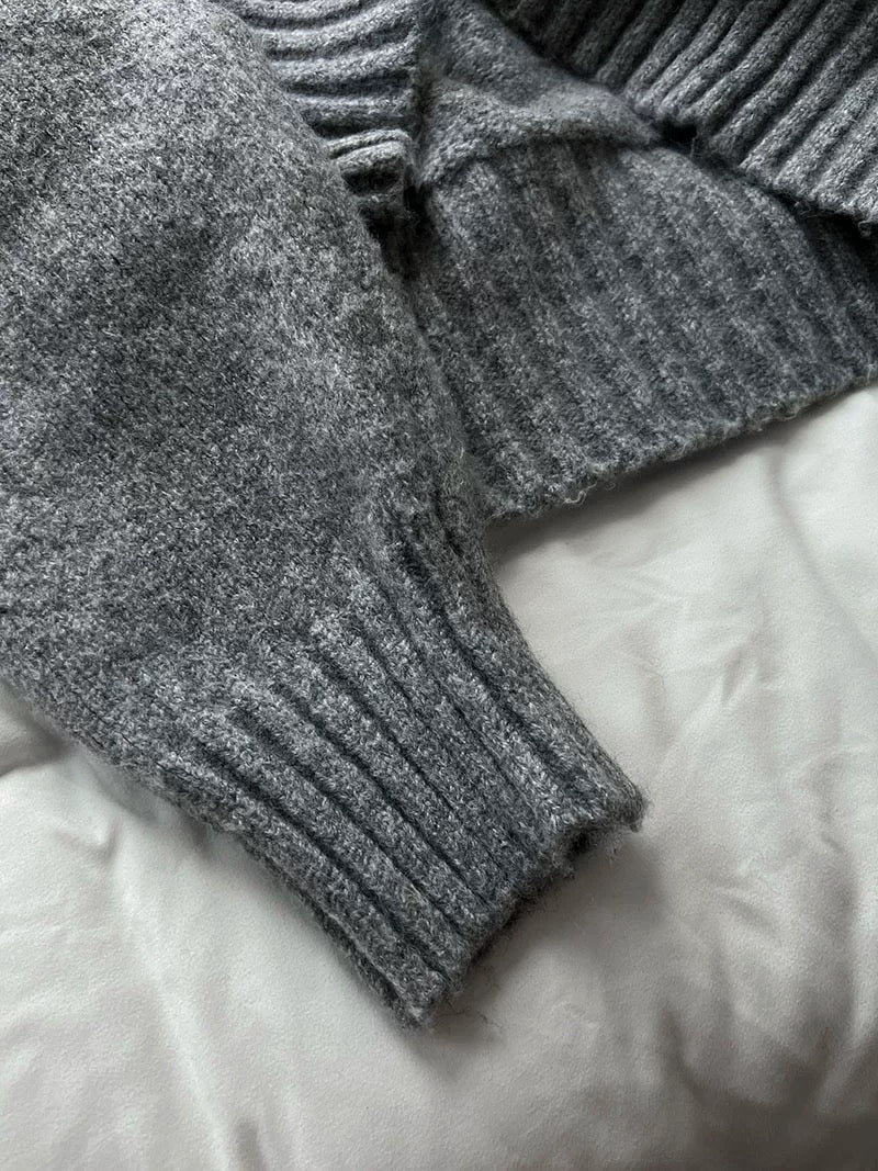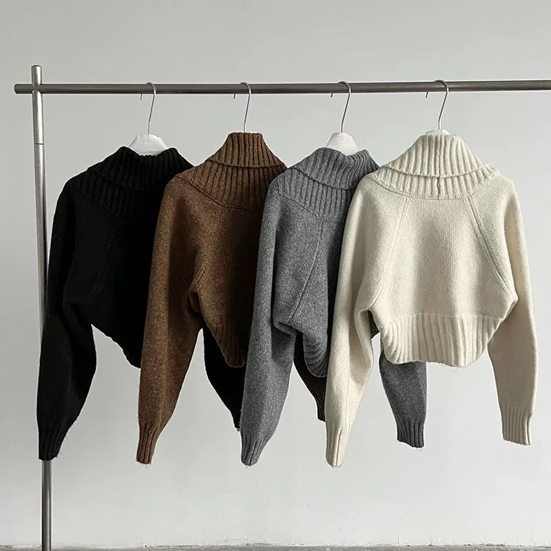 ウールブレンドで肉厚で温かいニット素材の、ボレロカーディガンとベアトップのセットになっています。