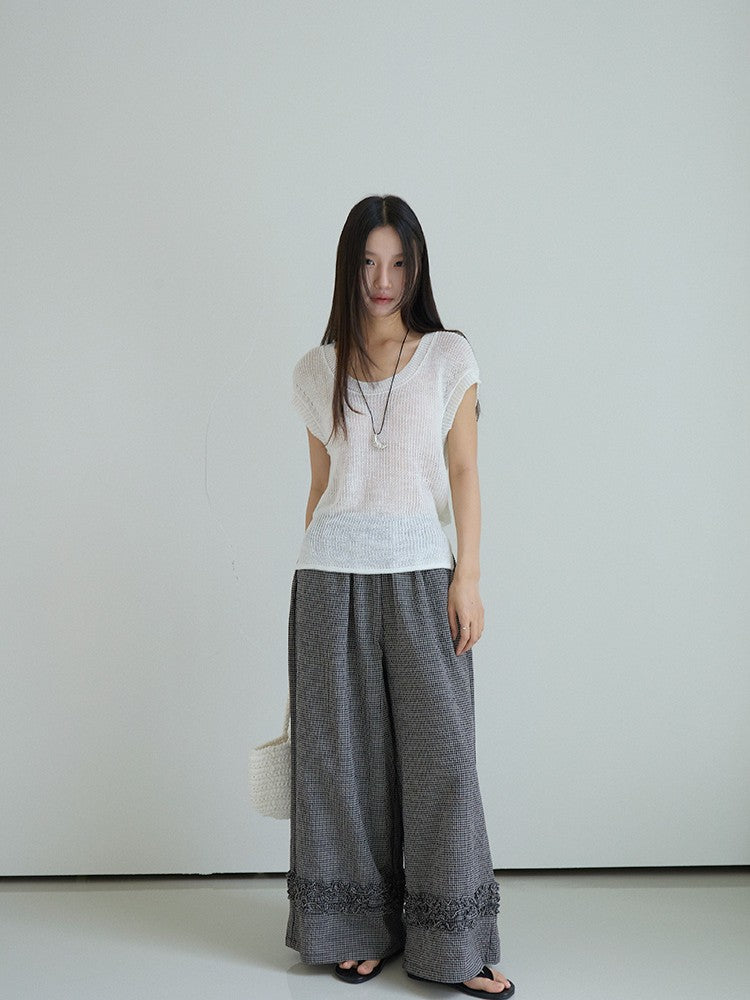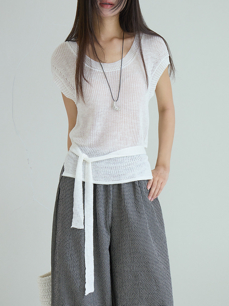 シアーサマーニットリボン付きトップス