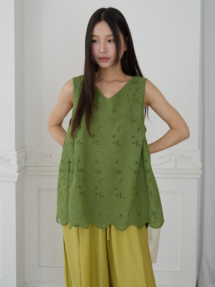 刺繍スカラップノースリーブトップス