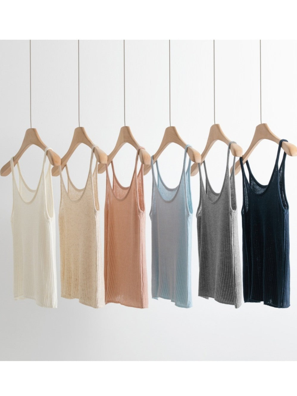 リネンブレンドUネックリブタンクトップ(パステル)